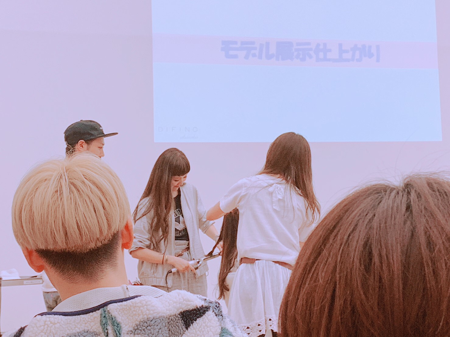 DIFINOオリジナルハイライトカラー技法の”キョッシュ”や、大人女性のお客様に提案するヘアアレンジ、アイロンワークetc…を、プロジェクターと口頭。技術展示でお伝えさせて頂きました。