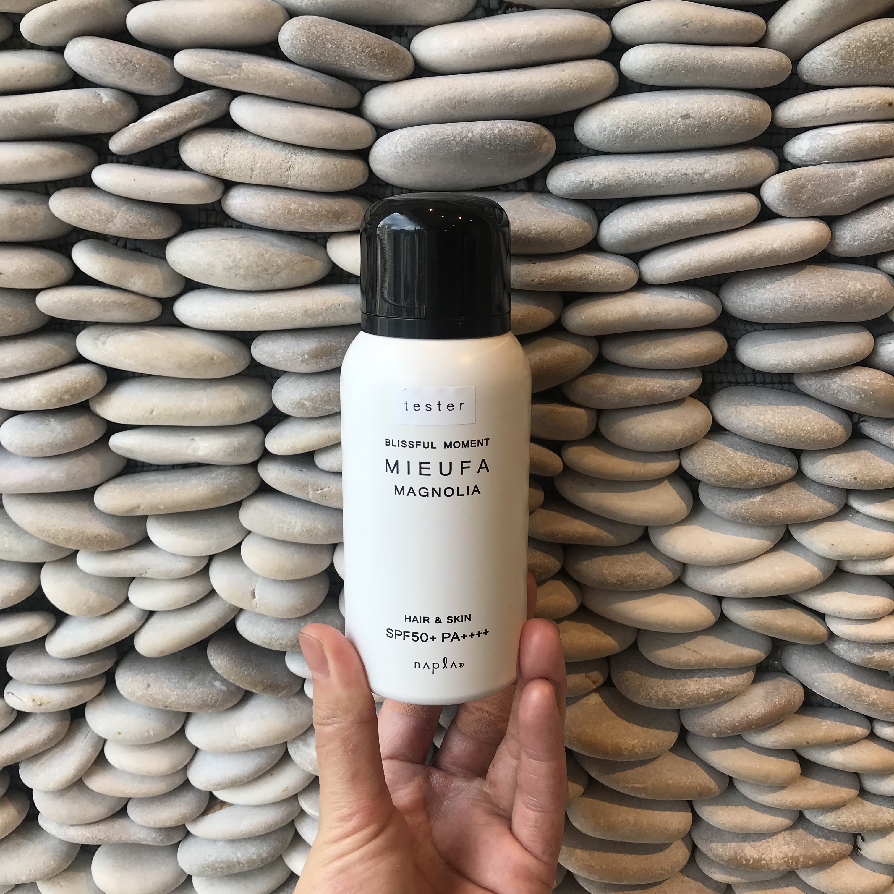 髪も日焼けしてしまうので、仕上げに髪にも日焼け止めを