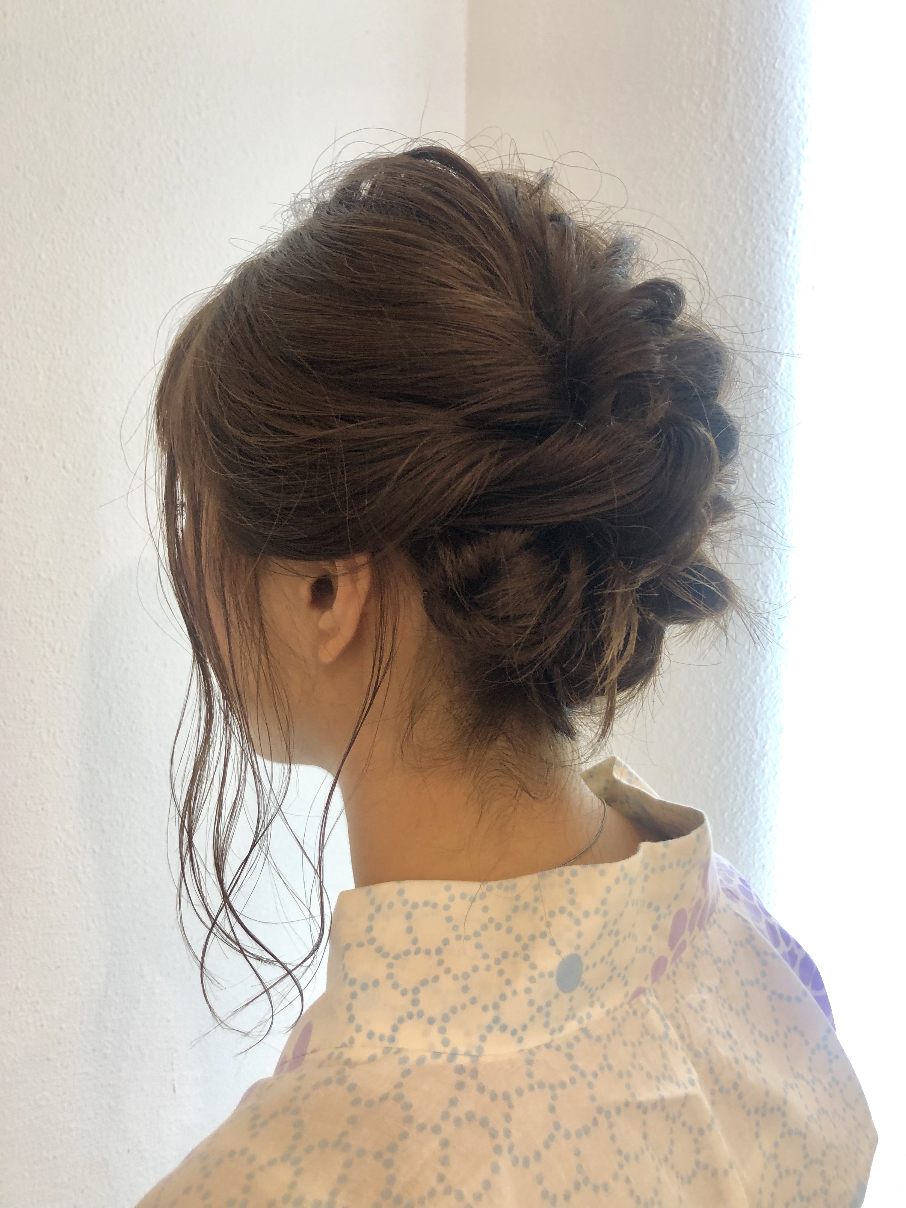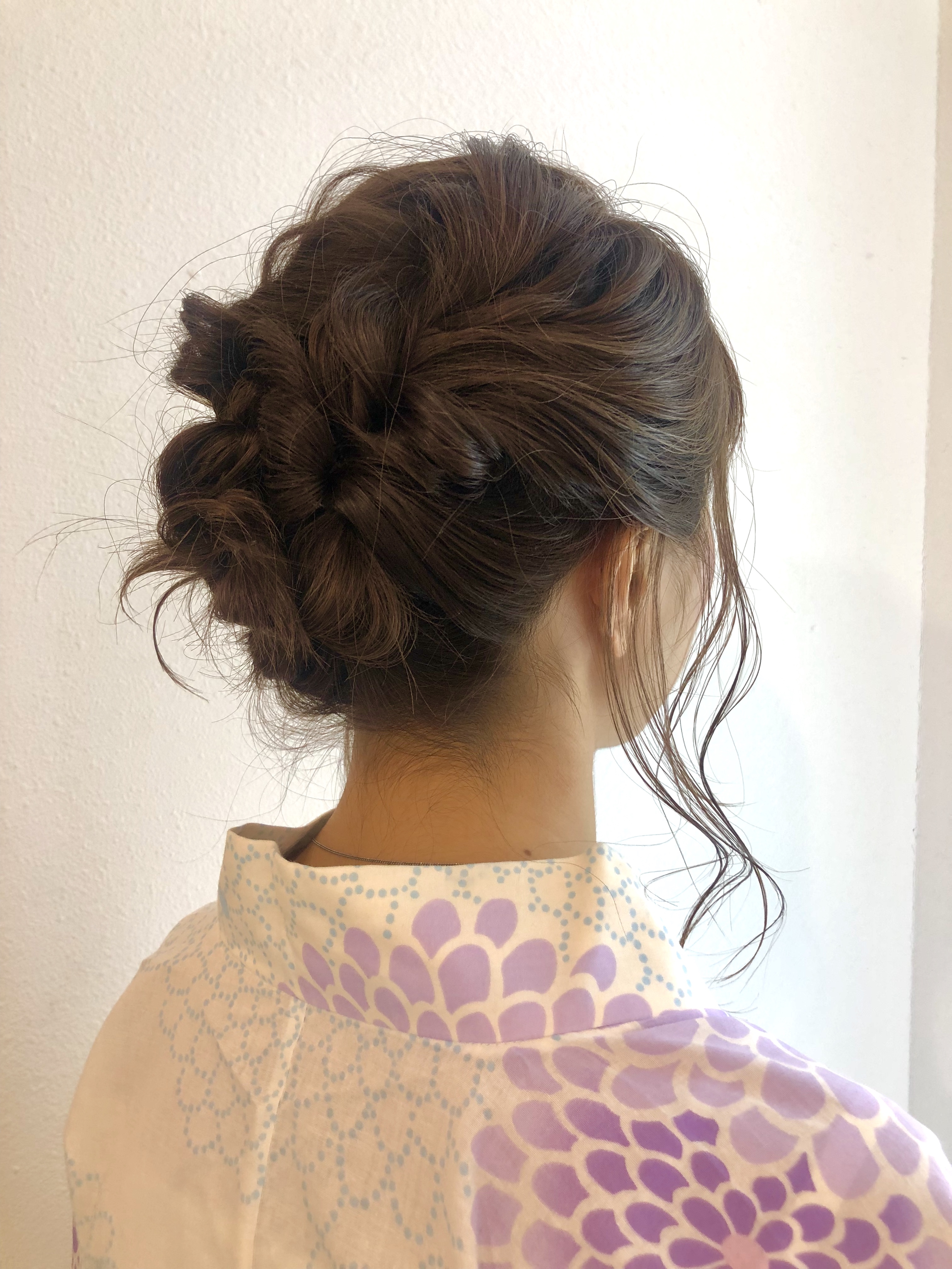 あえて、下の方でまとめて古風な浴衣に合うように。