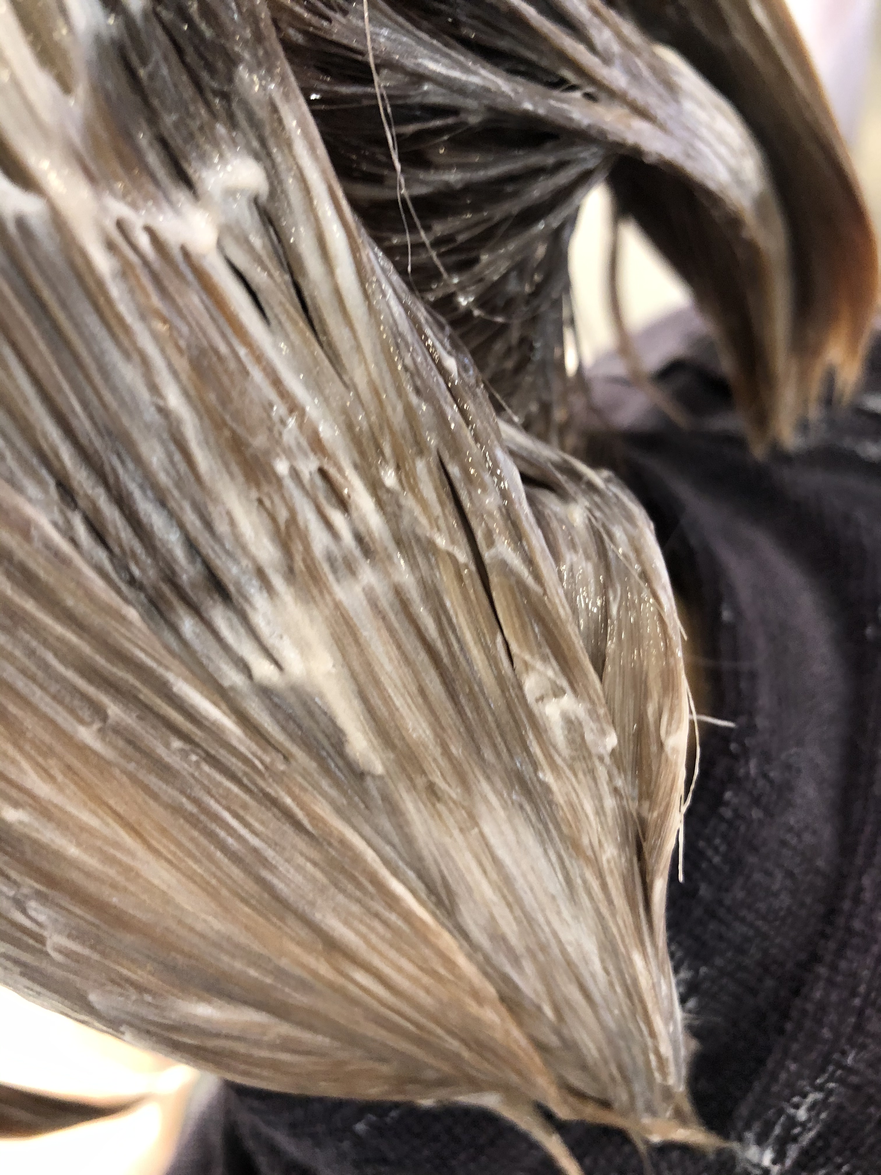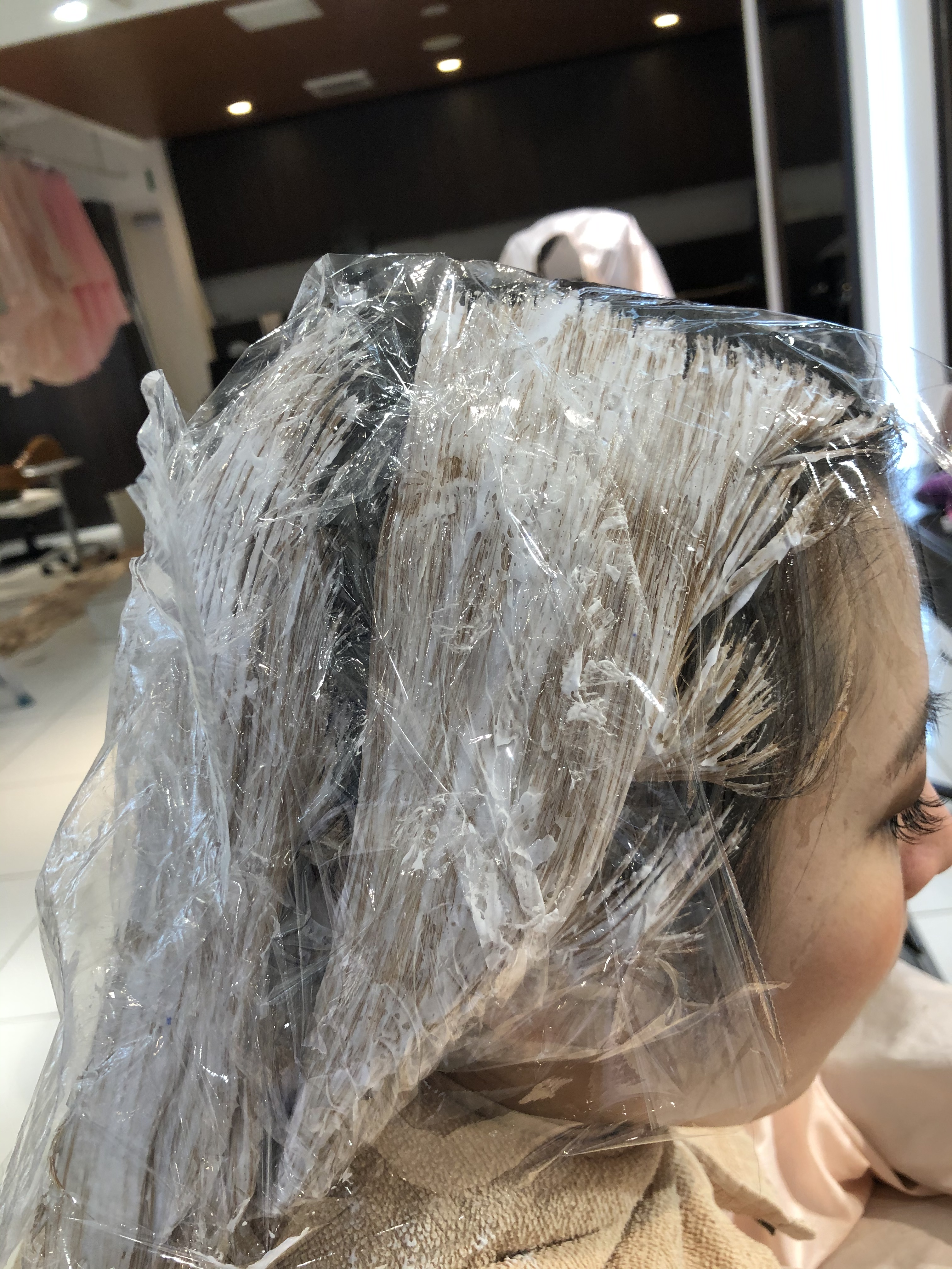 毛先に色味が入り過ぎて暗くならない様に時間差で塗布したり、毛先には色味の薄い薬材を塗布したりとても慎重に!