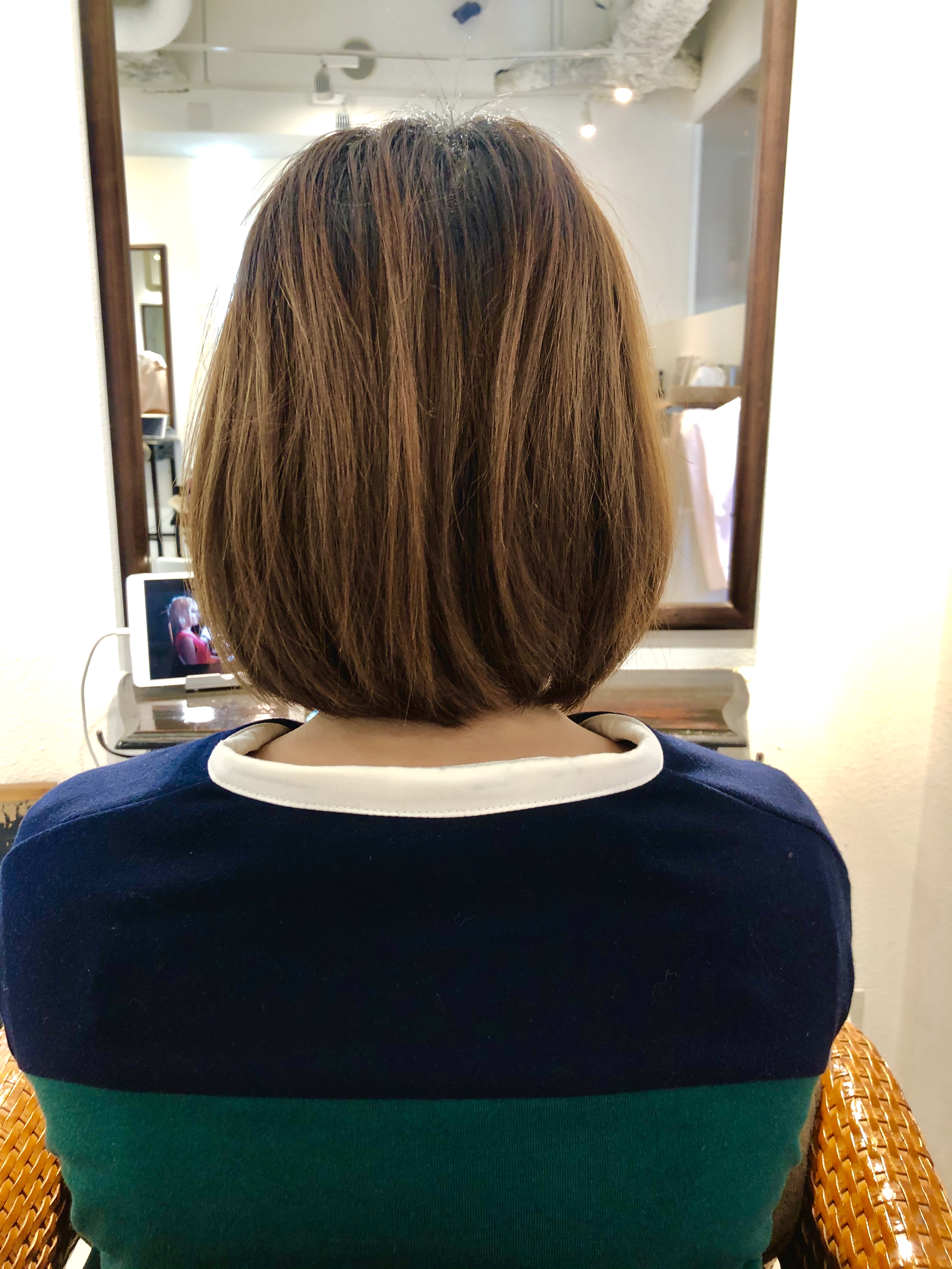 最初に提示されたミルクティーカラーだと退色が早い可能性がある話をした上で今回写真より深めの明るさになるように染めていきました!