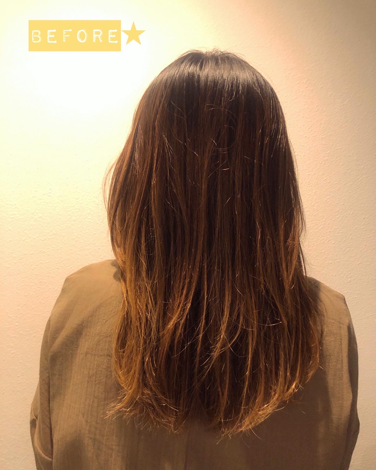 なので、まずはカットで毛先の傷んでいた部分をカットし、顔周りとトップの部分にレイヤーを入れふんわり&動きが出やすくします。