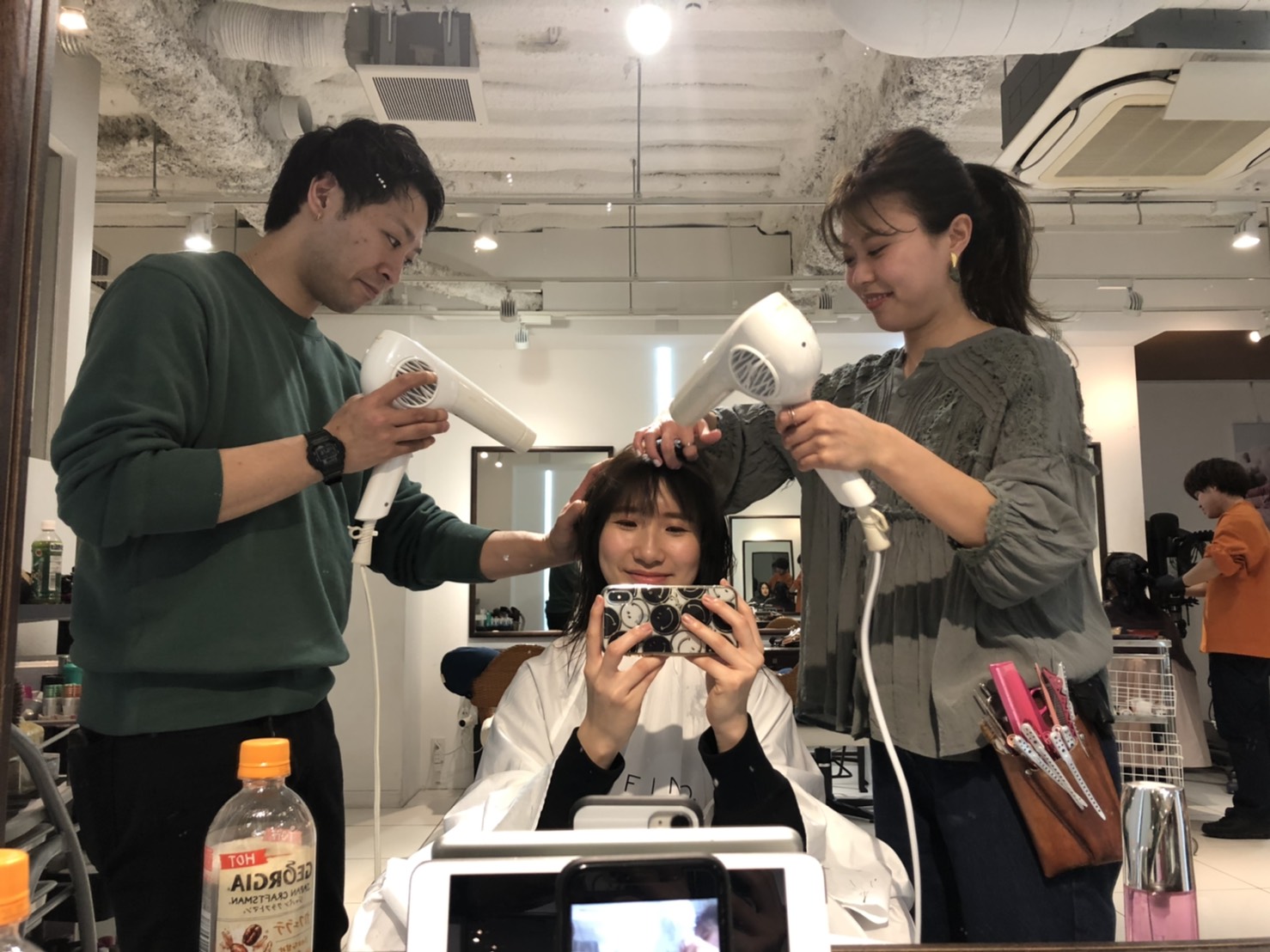 一緒に髪の毛乾かしてあげました(〃ω〃)