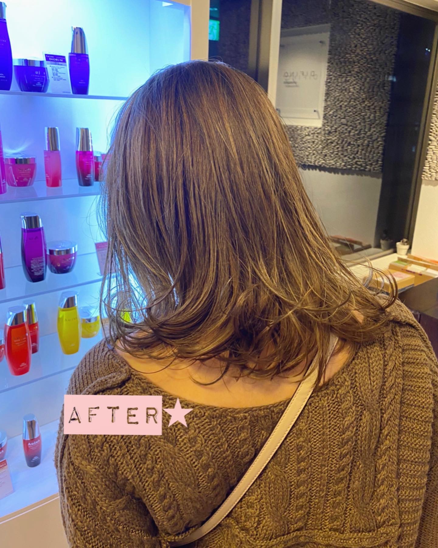 今回は、近々ご自分の結婚式があるとのことでヘアアレンジをした時により素敵に仕上がるように「キョッシュ(ハイライト)」を入れてカラーをしました。