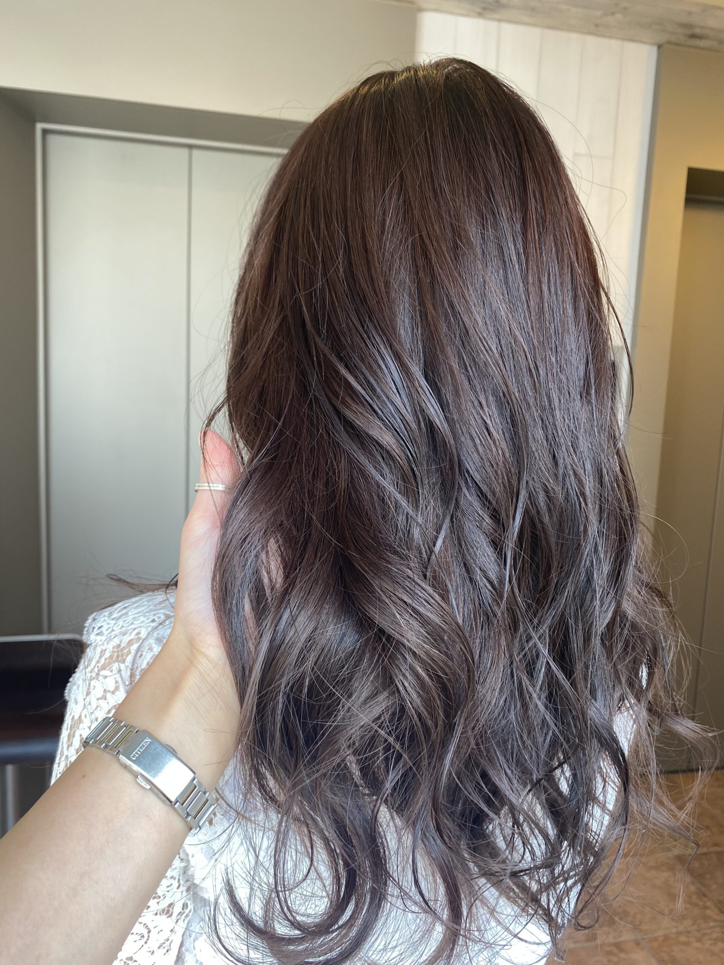 3トーン位のアッシュグレージュカラーで染めたお客様♡