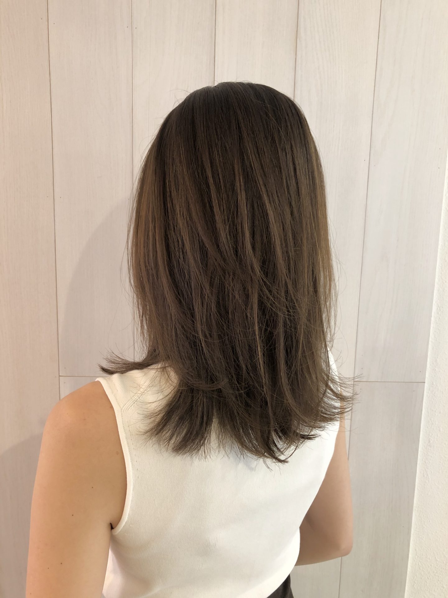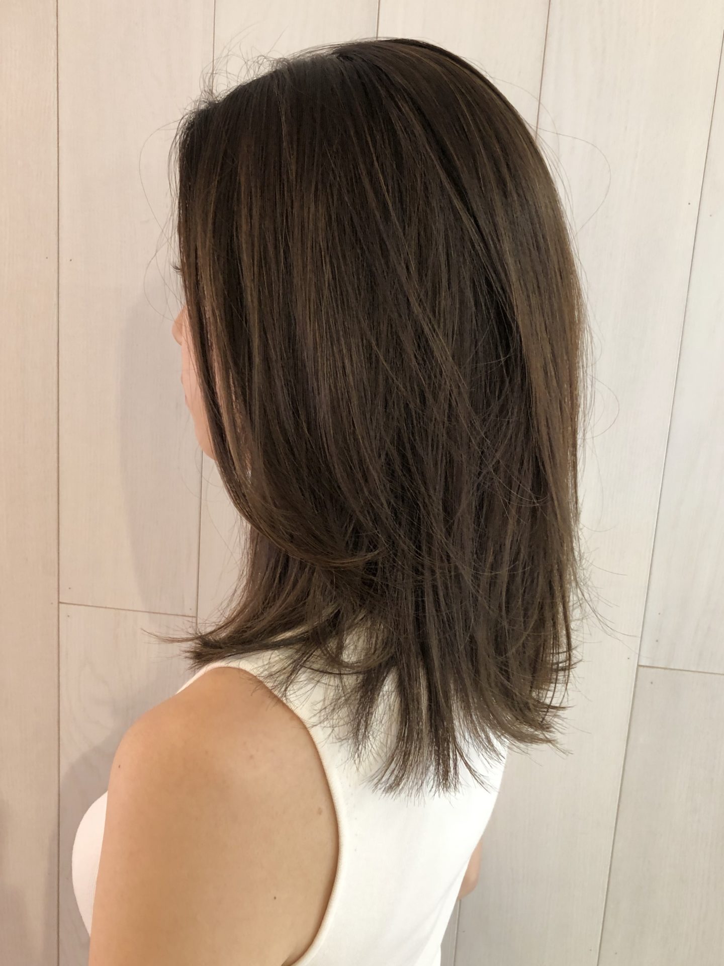 鎖骨くらいの長さのミディアムレイヤー。