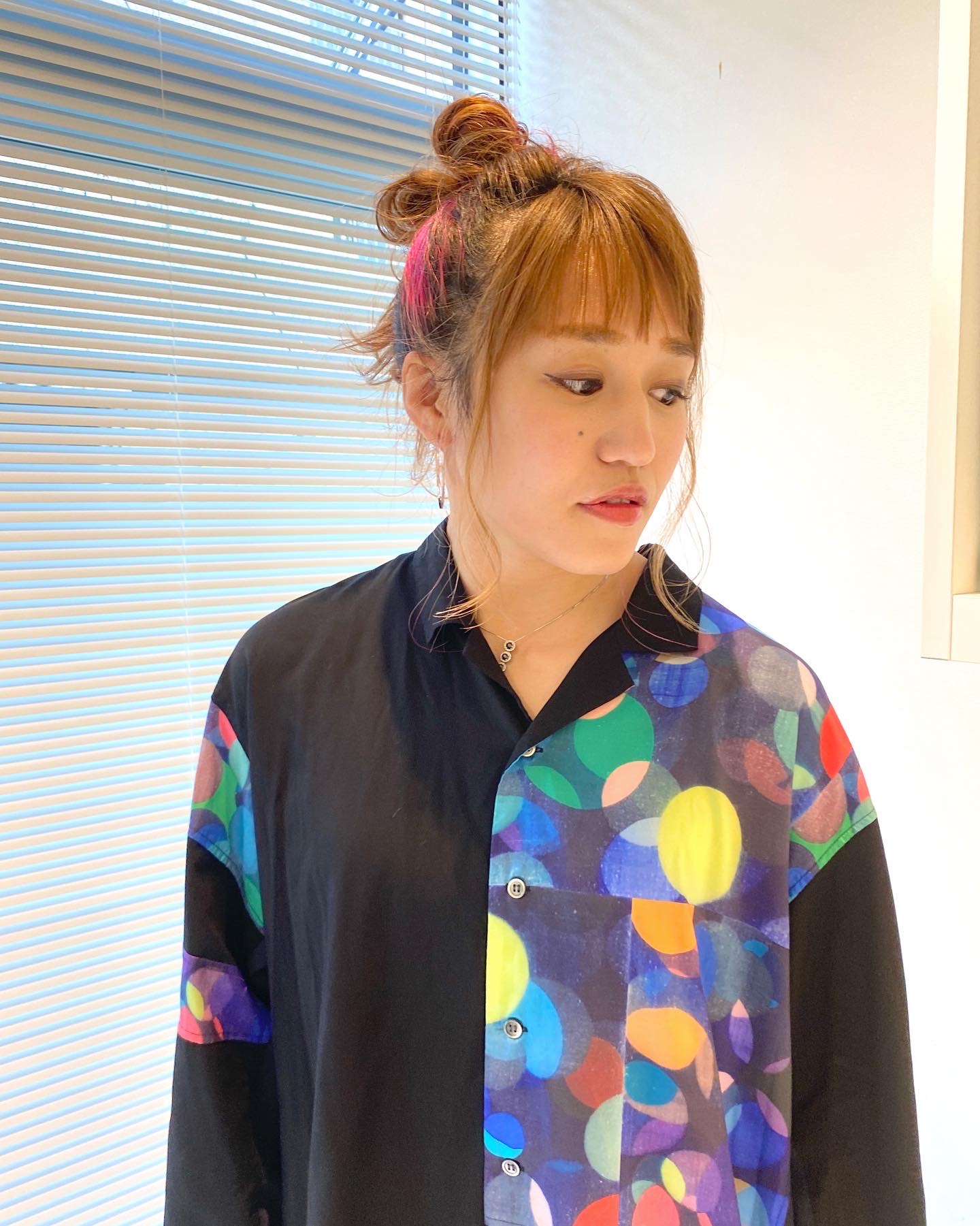 カットですが、前髪のしエリアを少し広げて、結んだ時にもバランス良く見える様にと、小顔効果UPになるように。