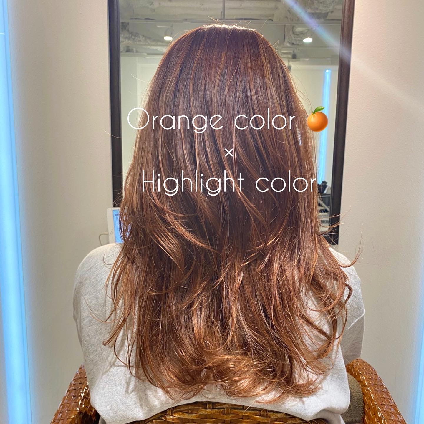ただのオレンジカラーではなく、明るめの透明感あるオレンジカラーに、立体感をプラスするため”DIFINOオリジナルハイライトカラー”を入れて