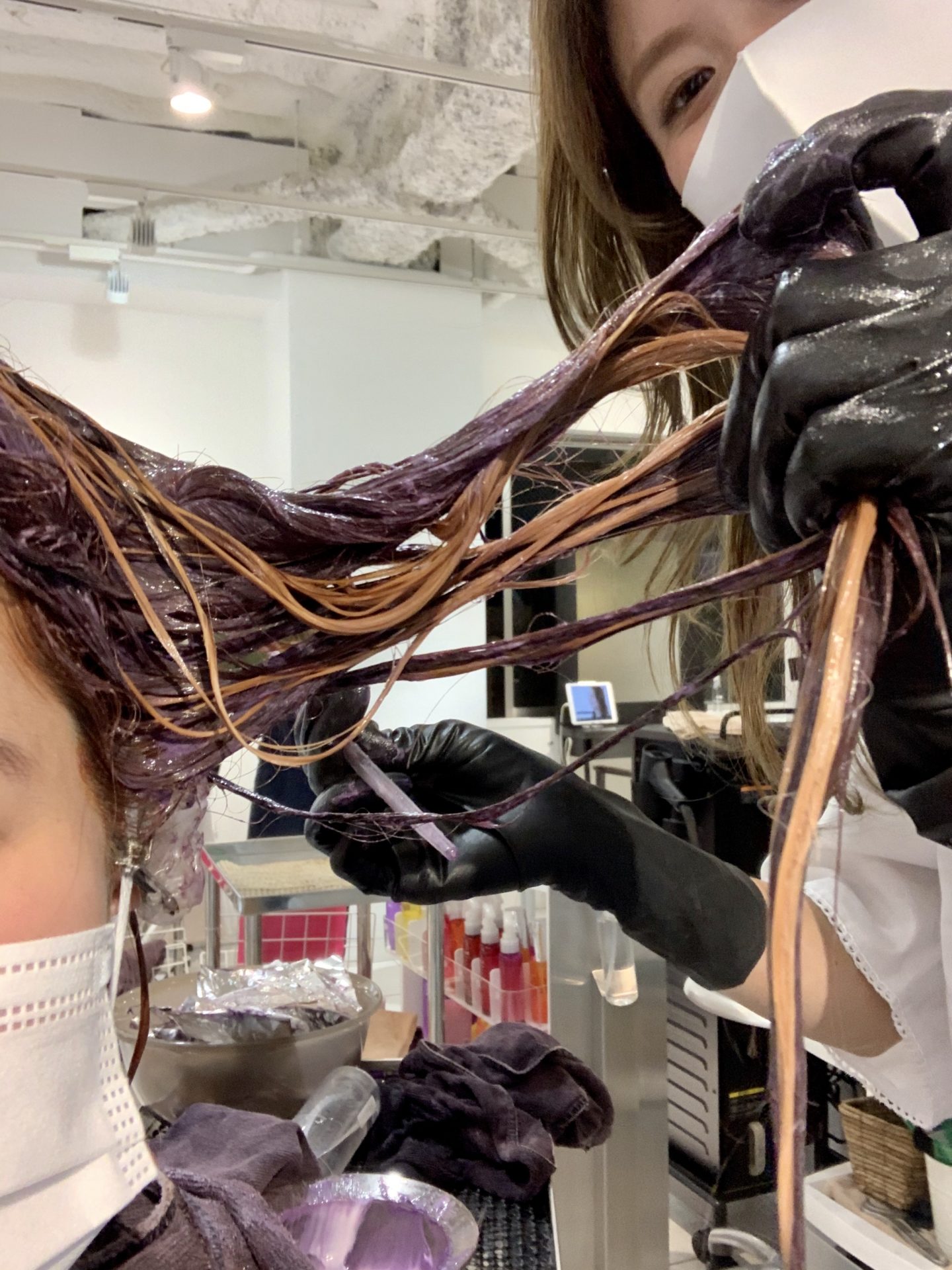 ↑ハイライト施術。途中経過。