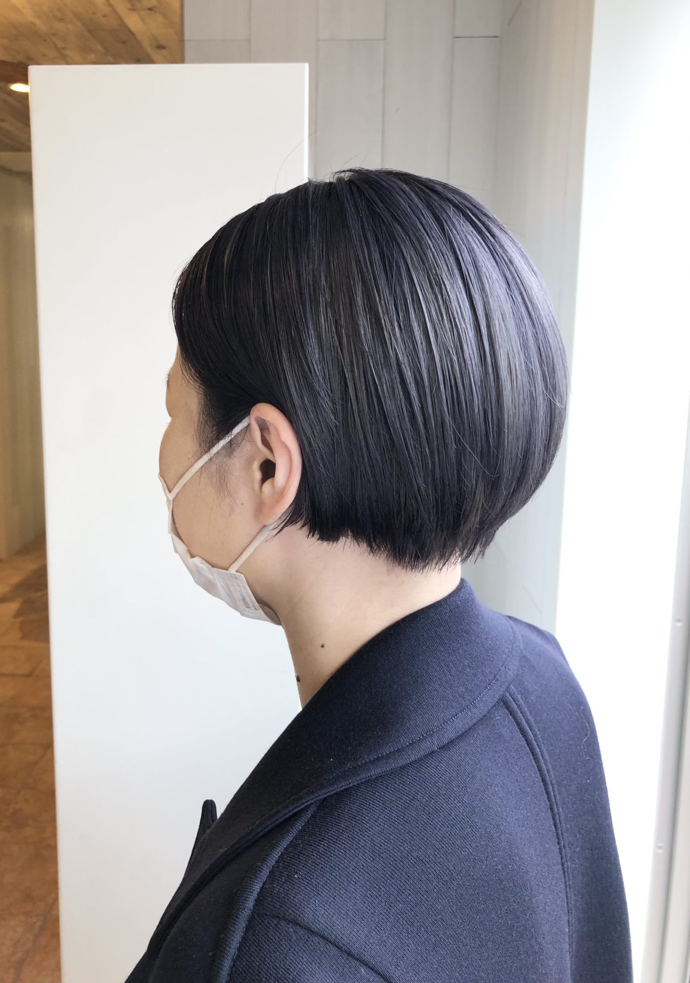 室内だとダークシルバーにネイビーっぽく見えて、自然光にあたるとよりシルバーが際立ちます♪