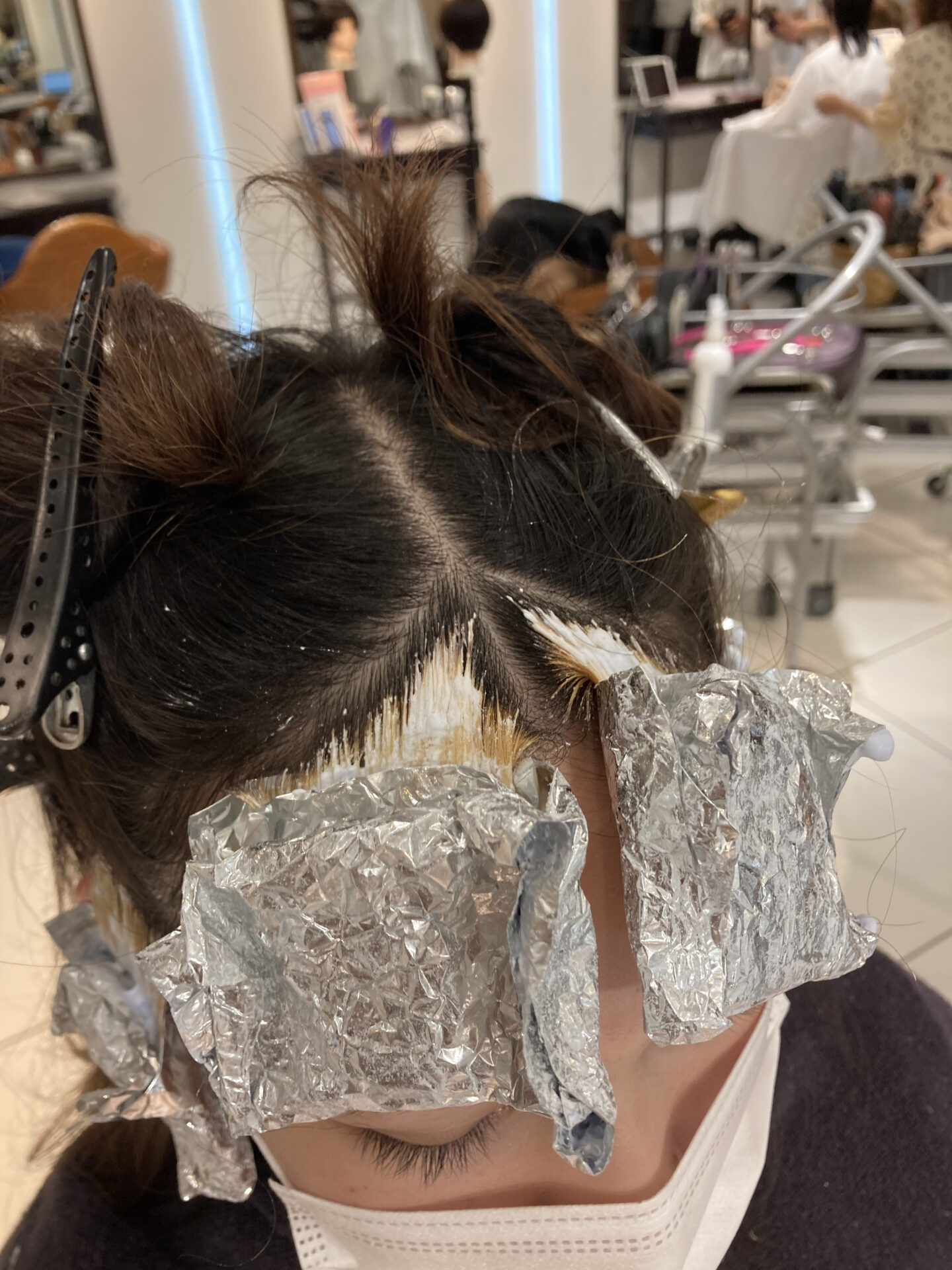 お顔周りの髪の毛をブリーチで白髪と同じくらい明るくしちゃいます!!