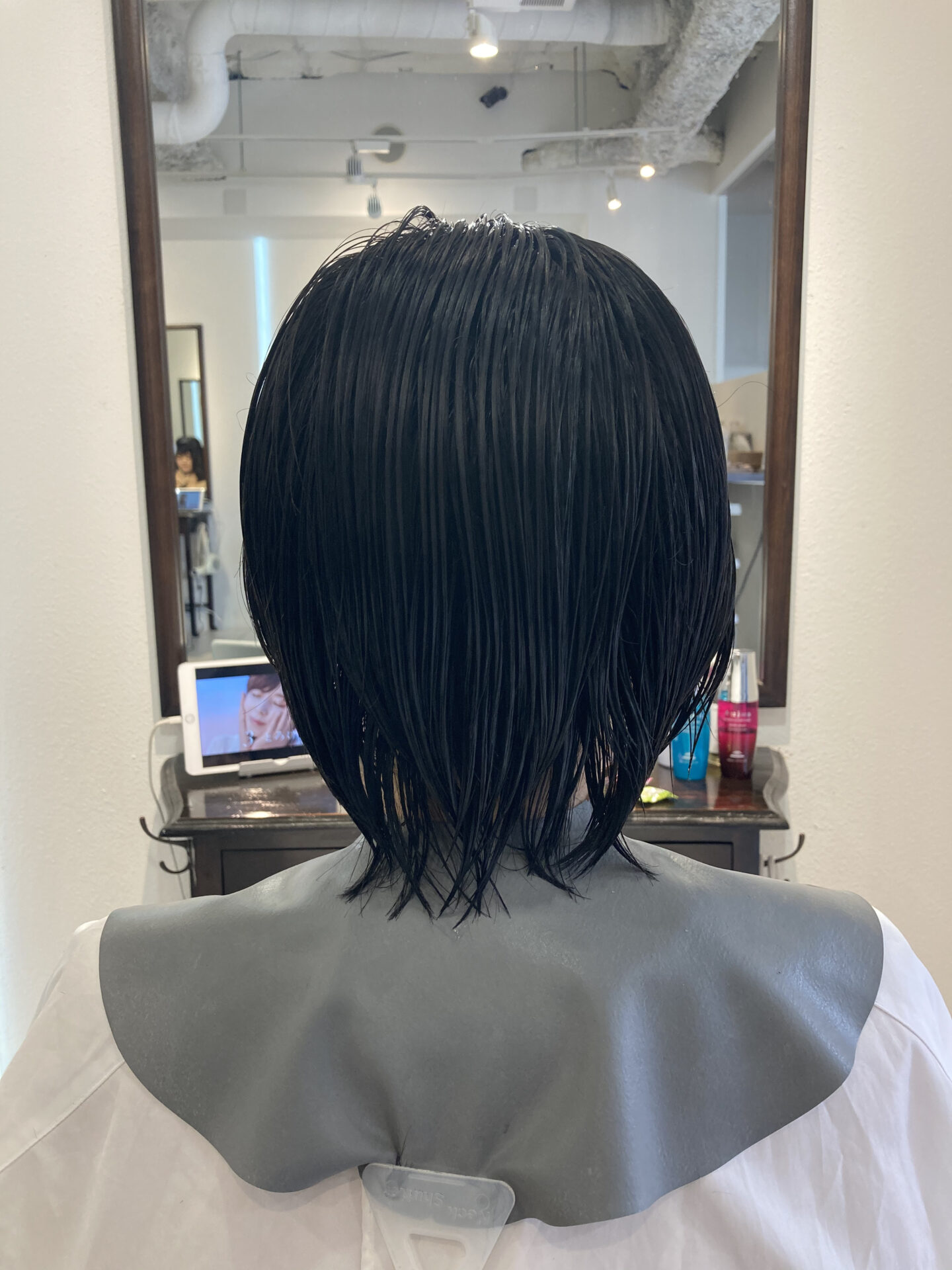 しっかり張りのある直毛さんなのでRをしっかりかけてカット!