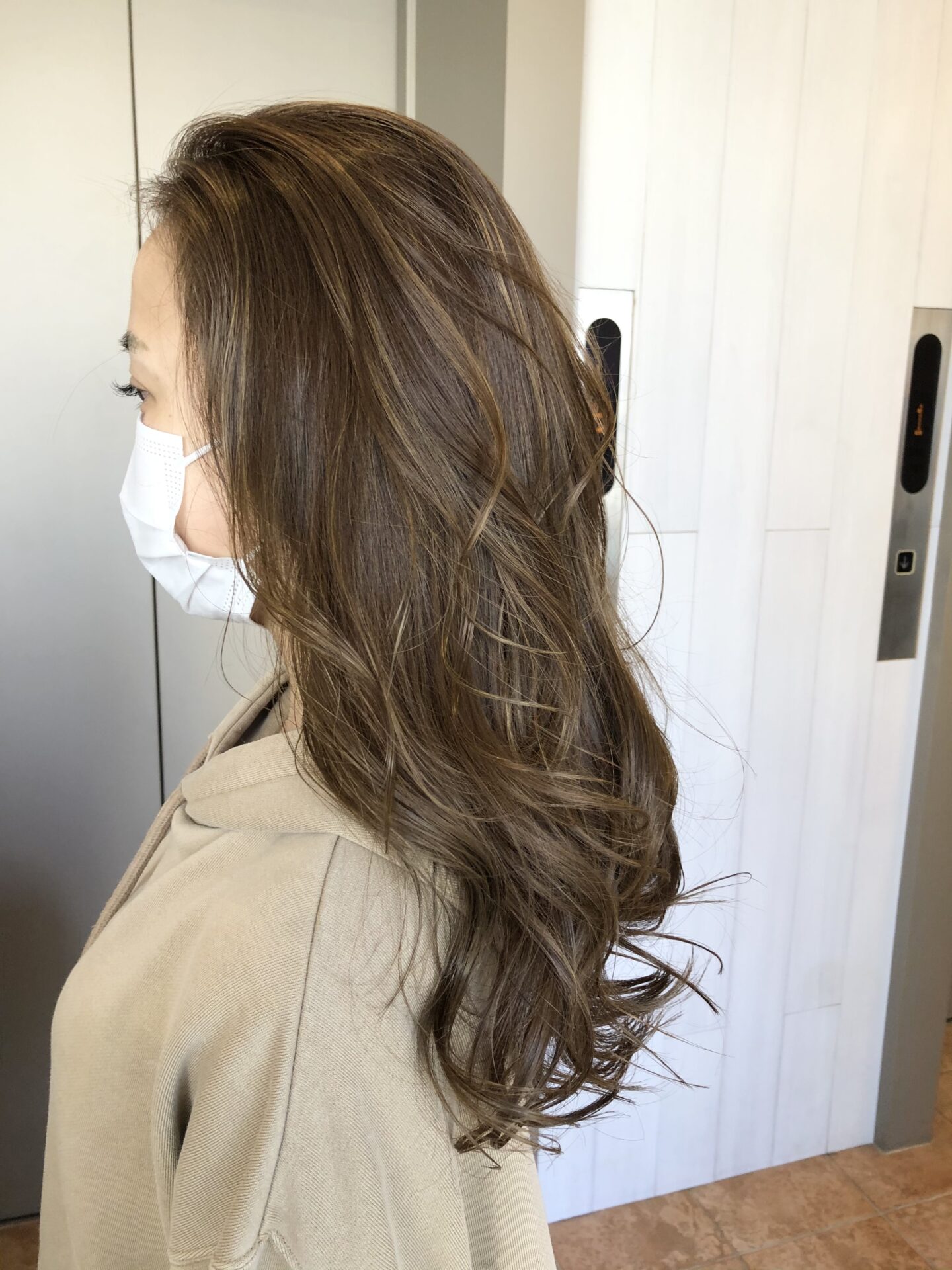 そこにオンカラーでイルミナカラーをかぶせるとツヤ感もアップされ、更にハイライトが際立ちます!