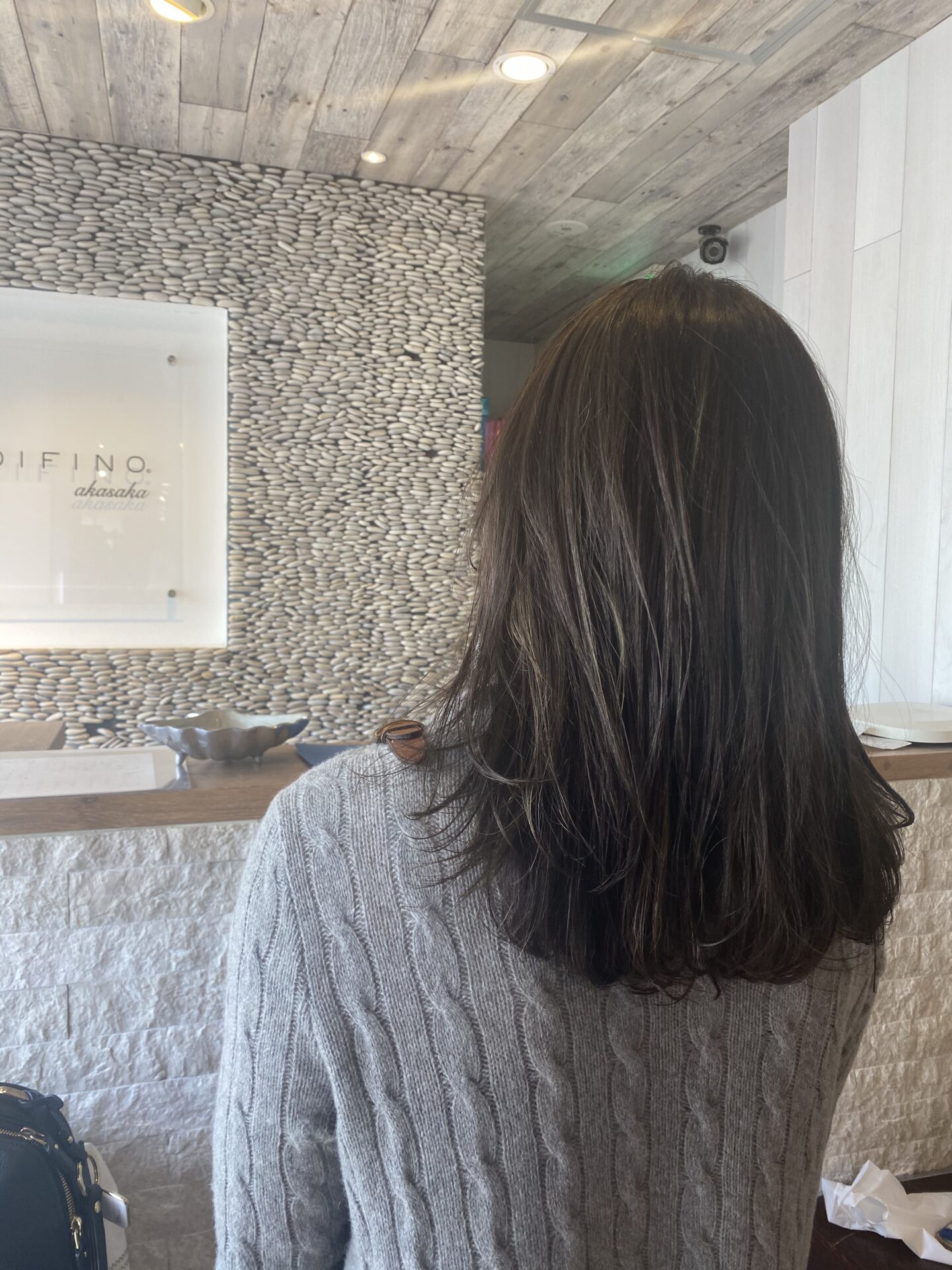 ダークグレージュとはいえ、光に当たると透明感が出て柔らかい印象にもなります!