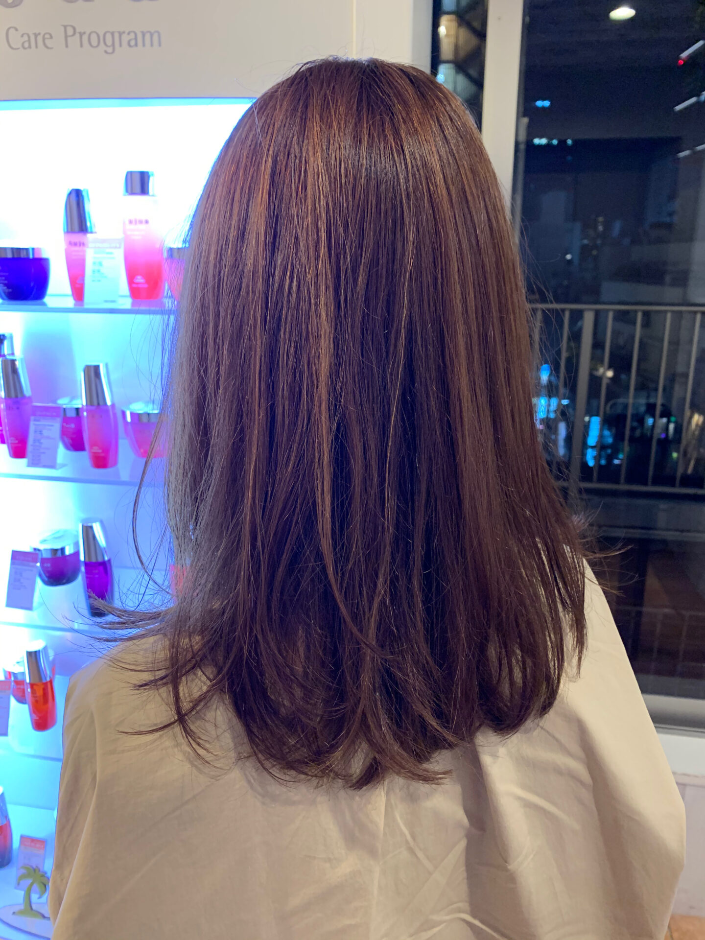 毛先が毛先を追うようにカットしているので、まとまりもよくふんわり感もあります!