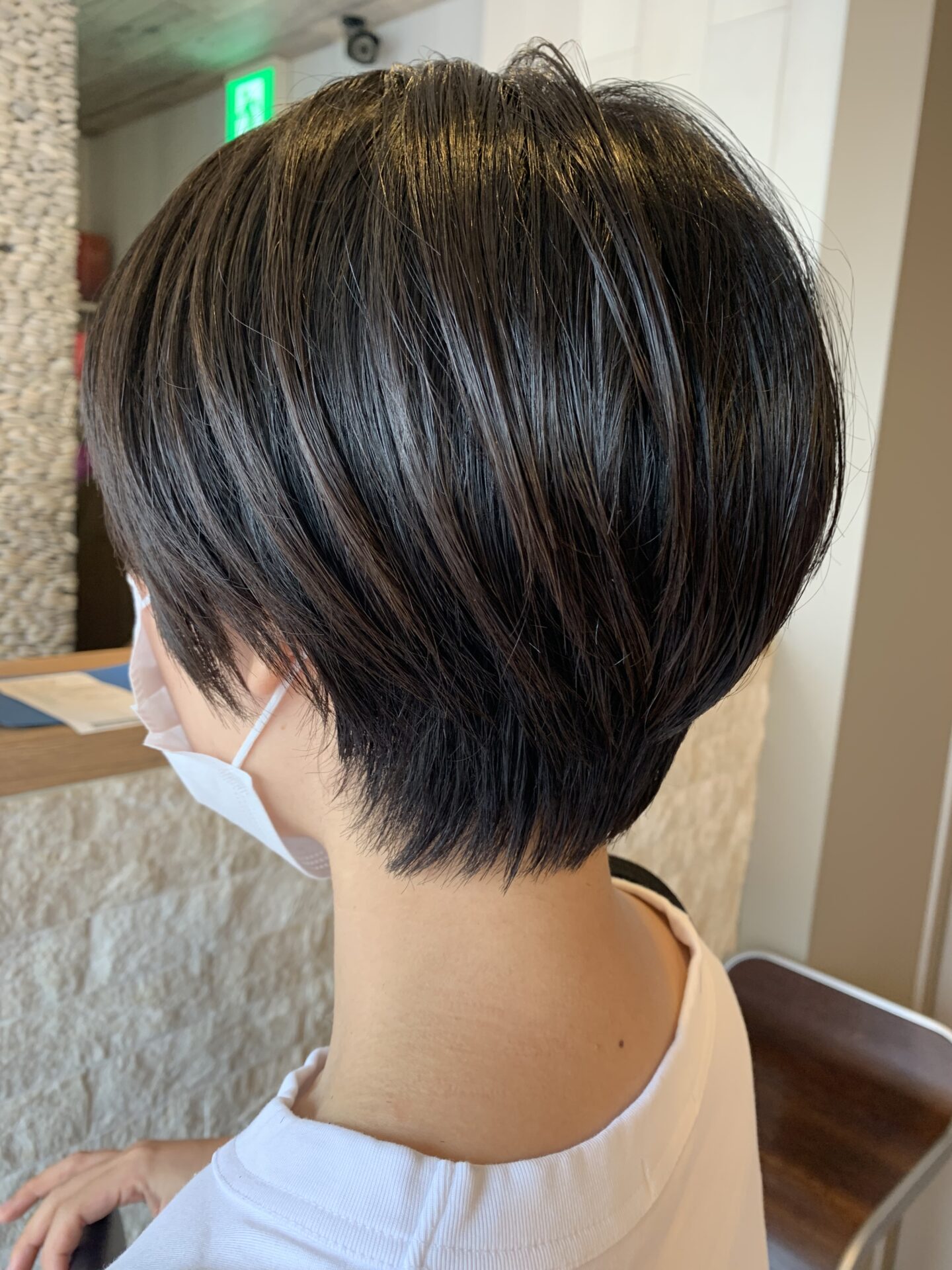 スライド鋏で、毛流れを作るように毛量を調節しているので、柔らかい毛流れを作り立体感のあるショートヘアになっています(^^)
