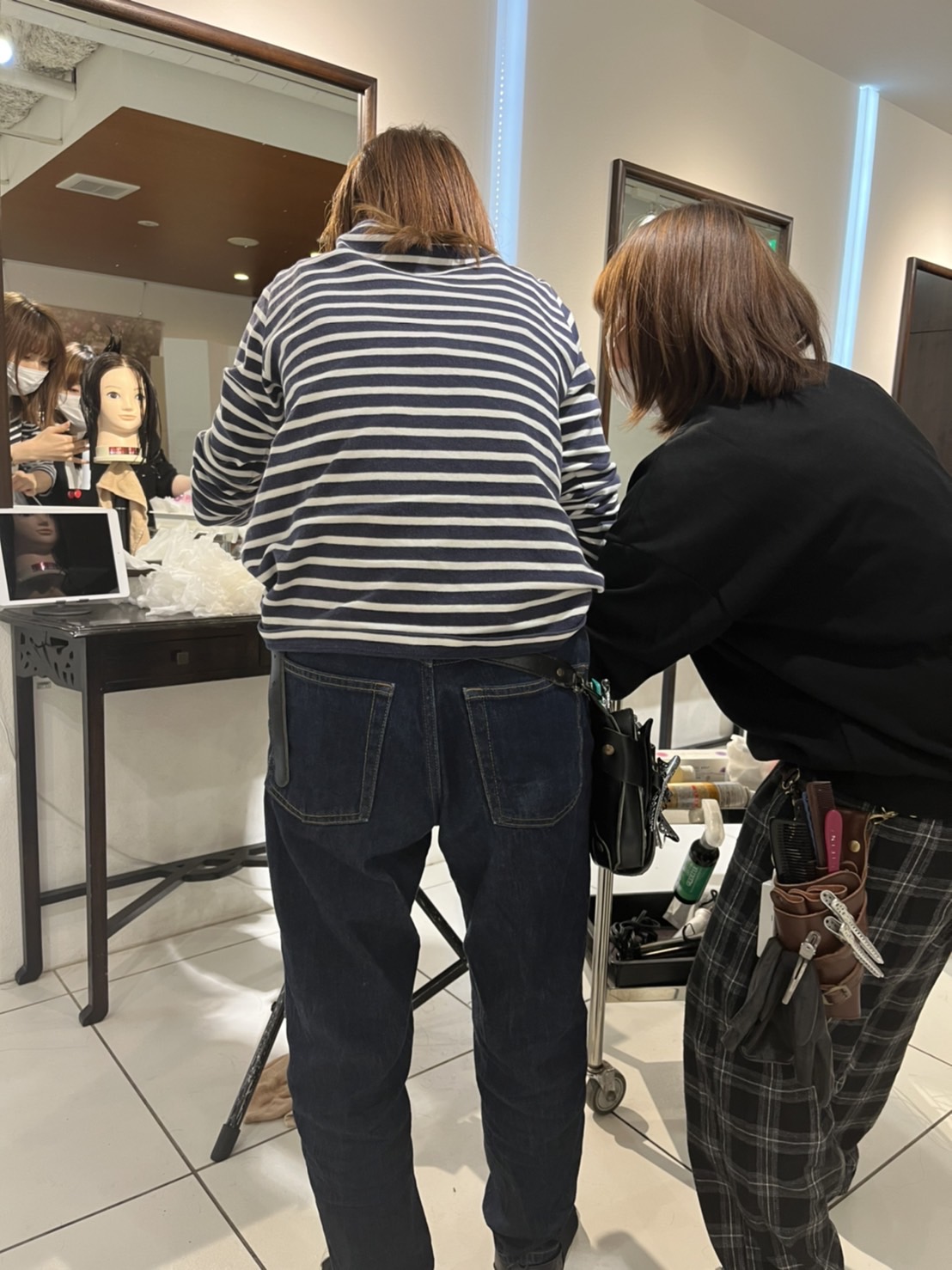 営業後の練習時間に同じチームのしげさんとたいがさんにパーマヘルプの練習を見ていただきました!
