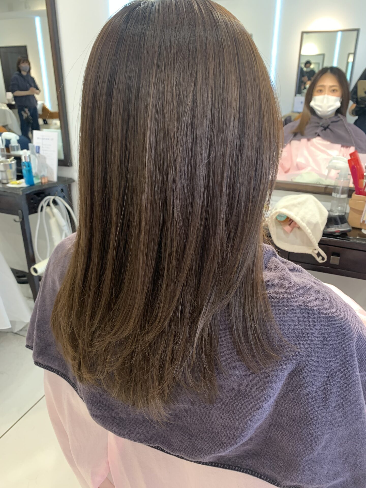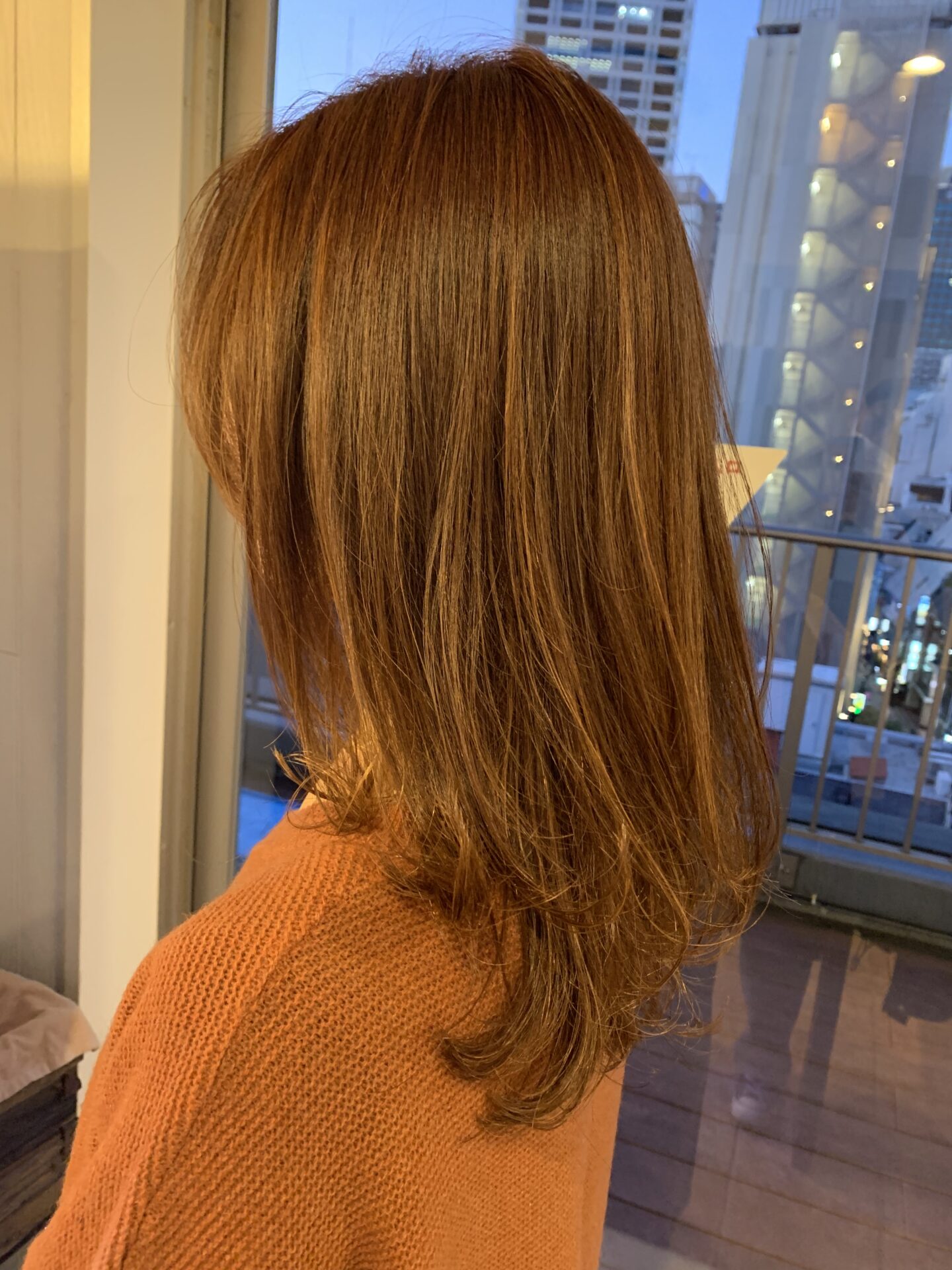 暖色系は、艶が出るのですが、硬く見えやすかったりもします。なので、メッシュを入れて、立体感と透明感をプラスしました!