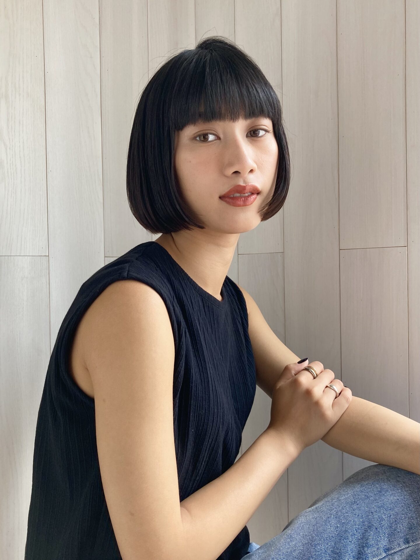 3枚目のボブは1枚目同様顎ラインボブ