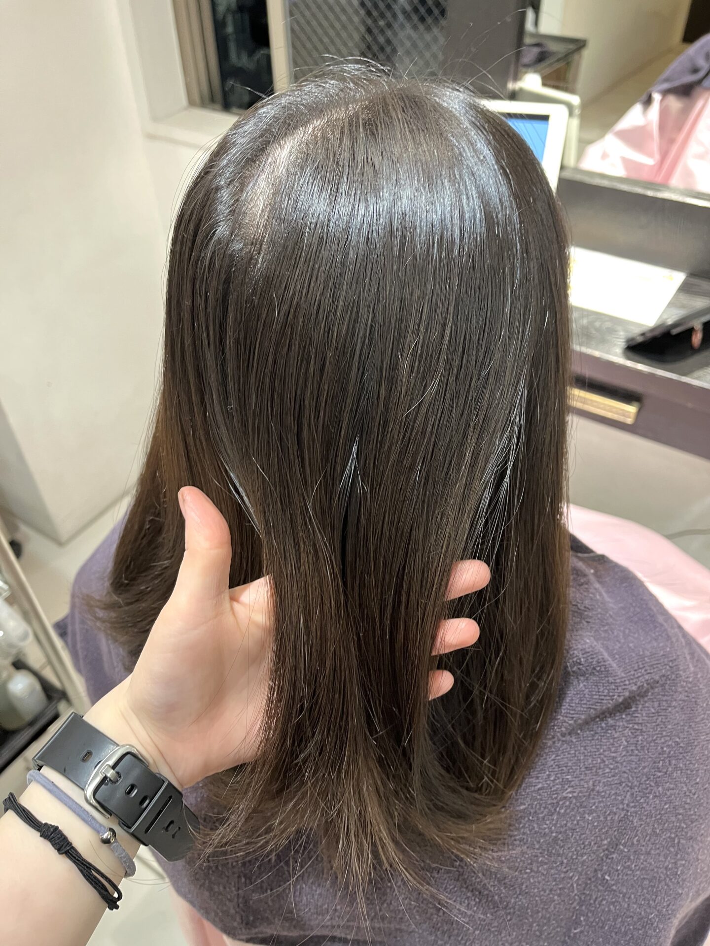 全体に細かいメッシュを入れて地毛よりほんのり明るいような仕上がりになるのであまり明るいカラーができない方やカラーをする頻度が高くない方にもおすすめです!