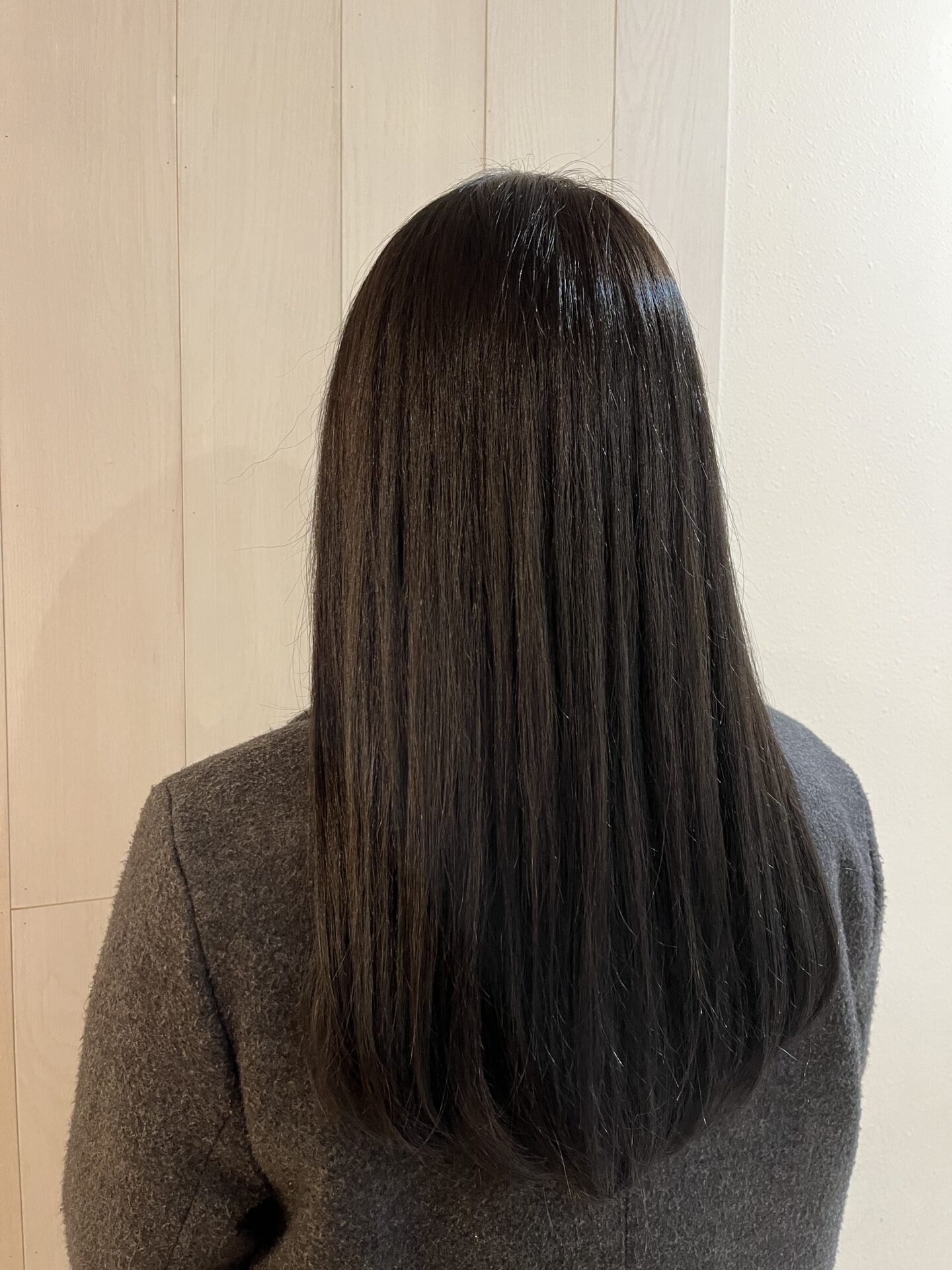 就活用だけど真っ黒にはしたくない!ということだったのでしっかり暗めにはしつつ、ブラウンみをプラスして地毛風のカラーにしました💫