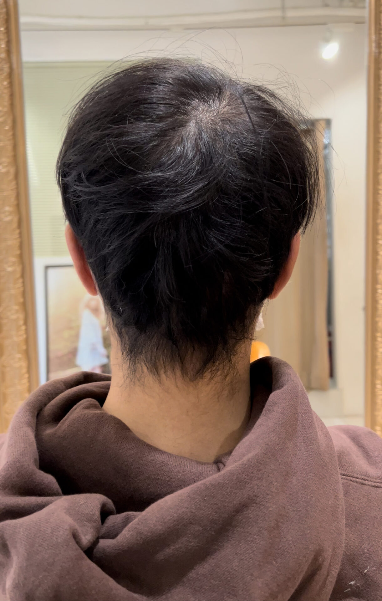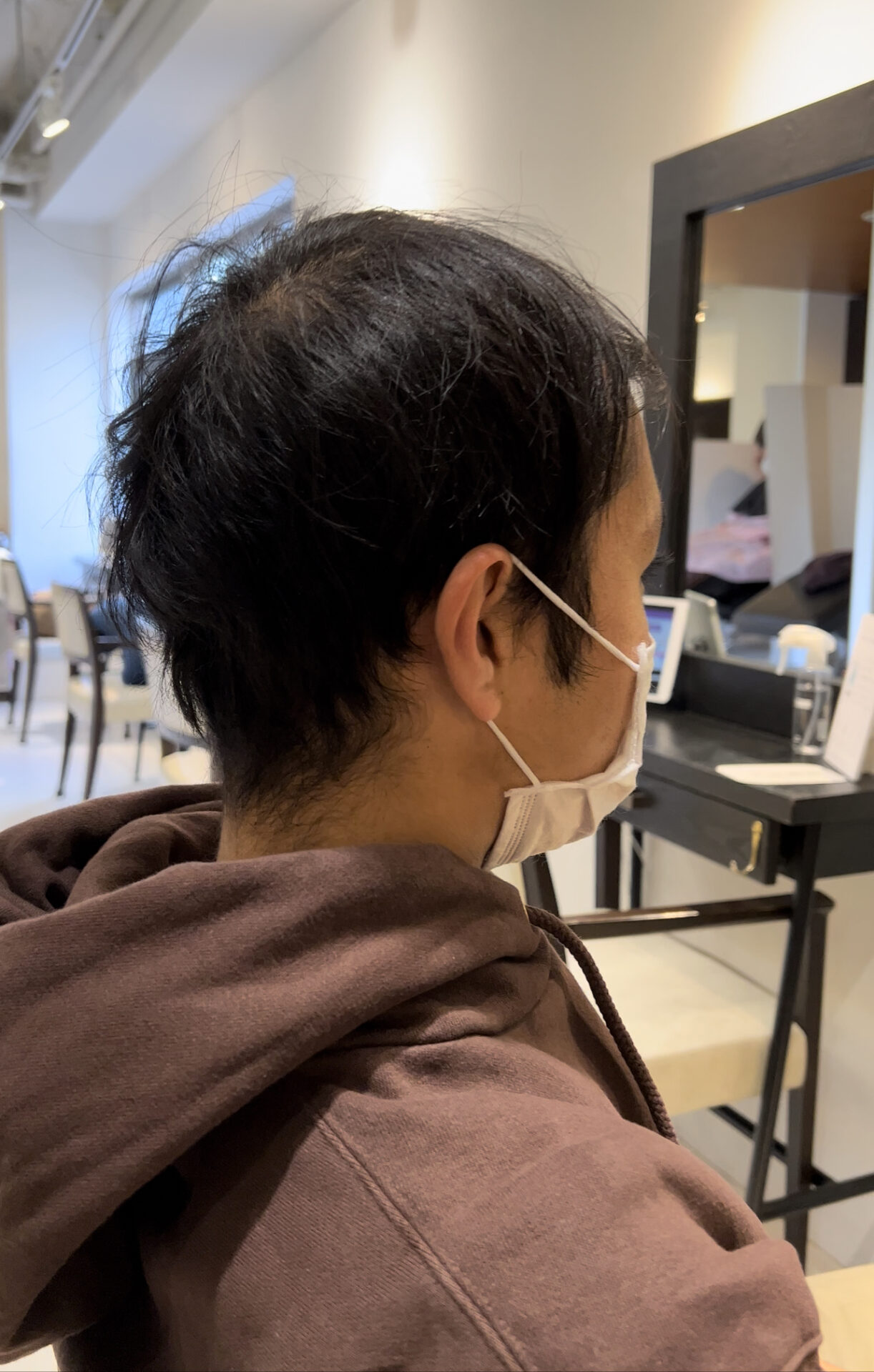 顔周り、襟足の癖毛は0ミリからスタートで刈り上げてスッキリさせて、悩みを解消。