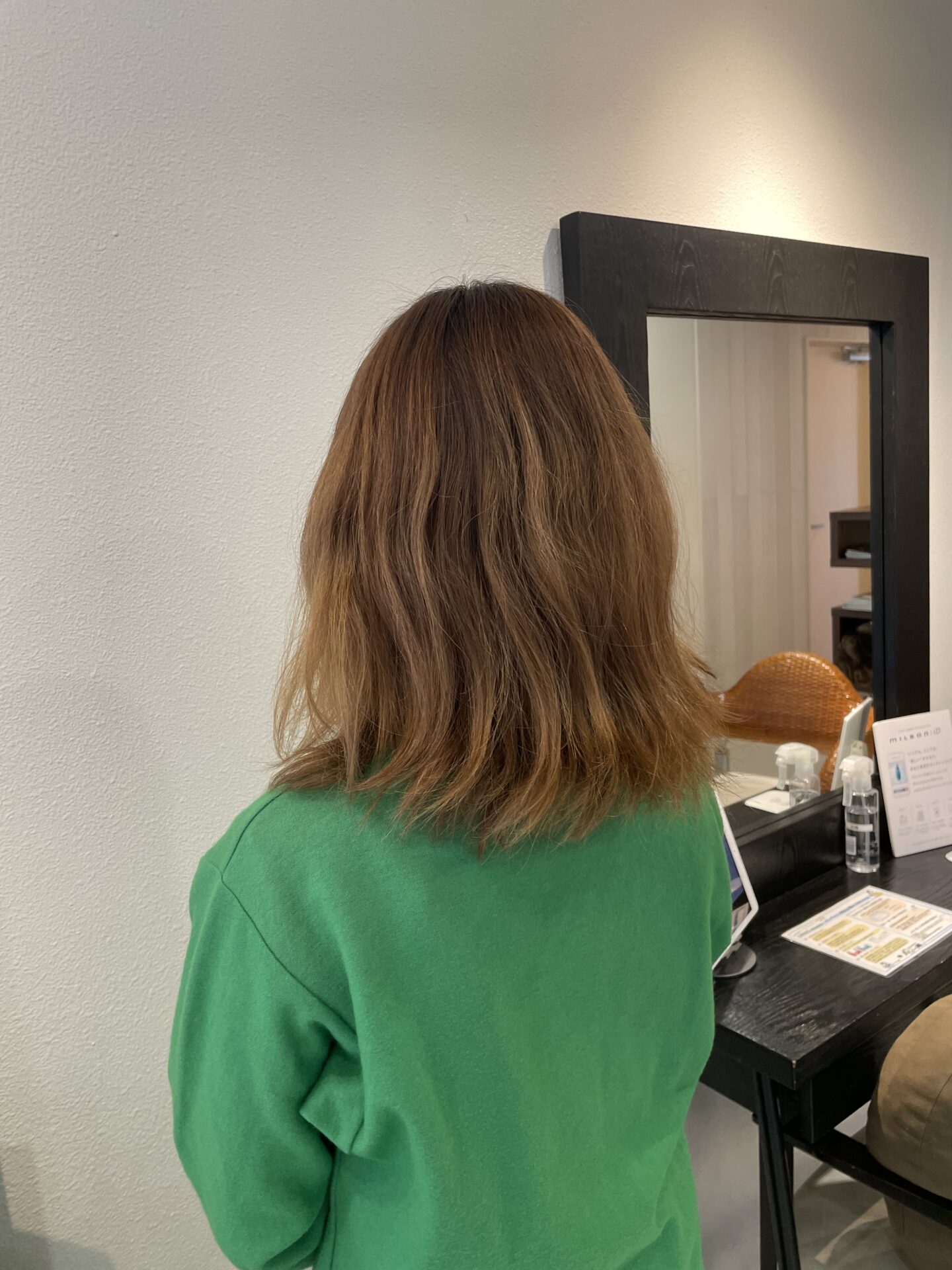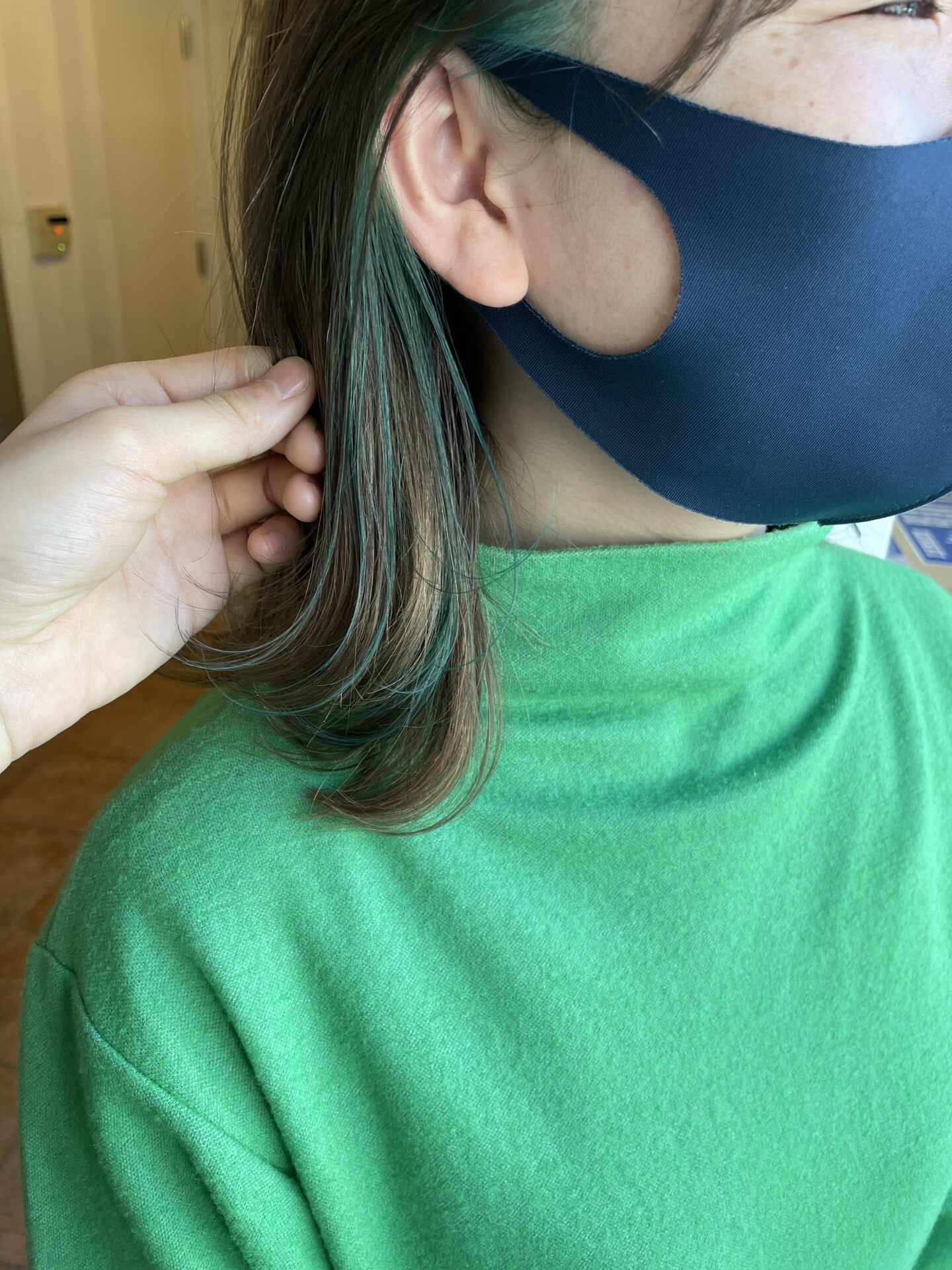 インナーカラーも緑を入れて明るさのコントラストをつけて統一感を出しました!
