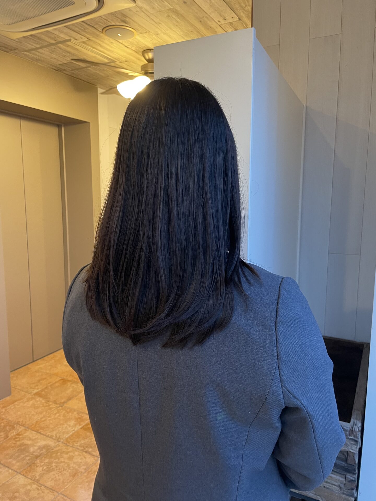 こちらのお客様も直毛で巻かず、結ぶことが多いのでどうしてもストンとした印象になりやすいようで、、