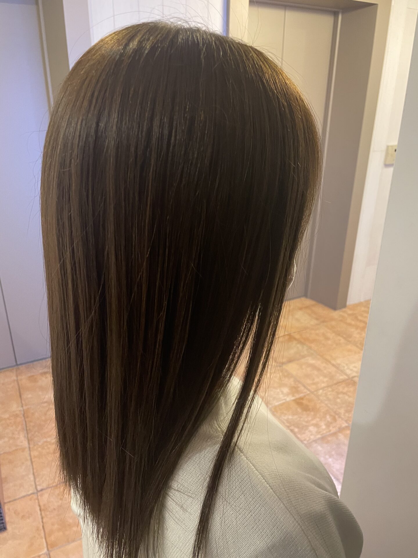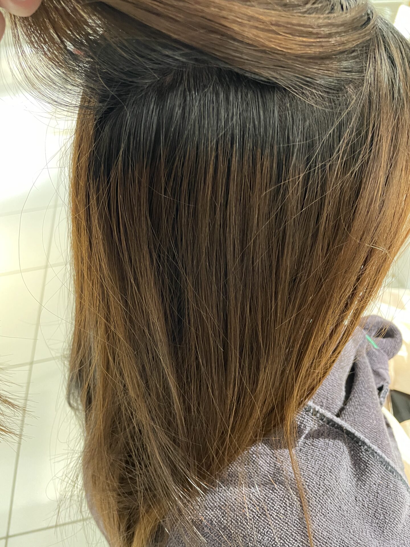 前まで暖色系の色を入れていたのですが、寒色系の色にしたいとの事だったので、赤みを落としつつ寒色系にできるよう下準備をして、モデルさん希望のオリーブ系の色味を入れてみました!!😁😁