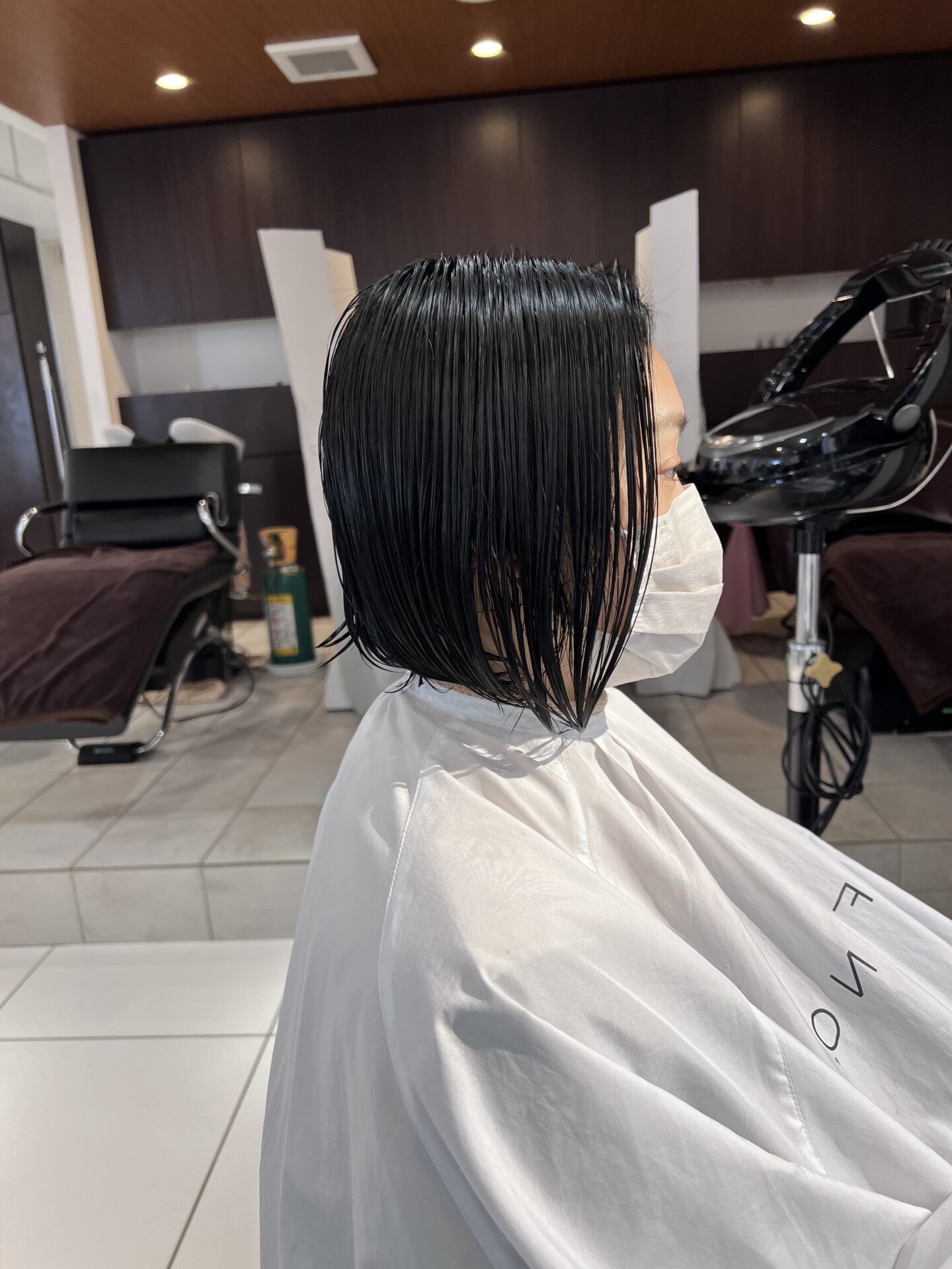なので襟足に長さを持たせて、縦長フォルムになるようにカット!