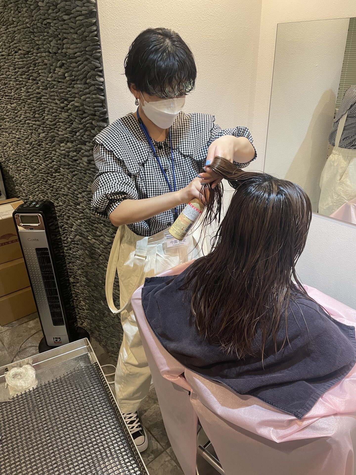 これはカラークロスの付け方とカラー時にする前処理の付け方の練習です!