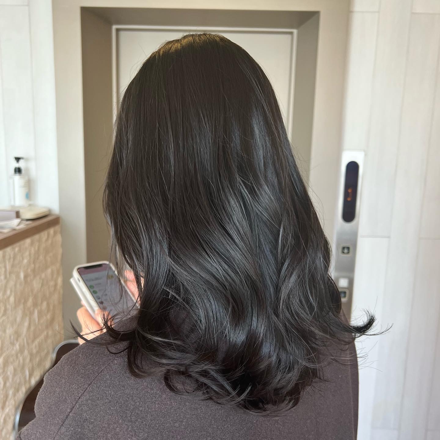 暗めのグレージュは青味が強くなるのでオレンジ味や赤味もしっかりOFFし深みのあるダークグレージュになります🌟