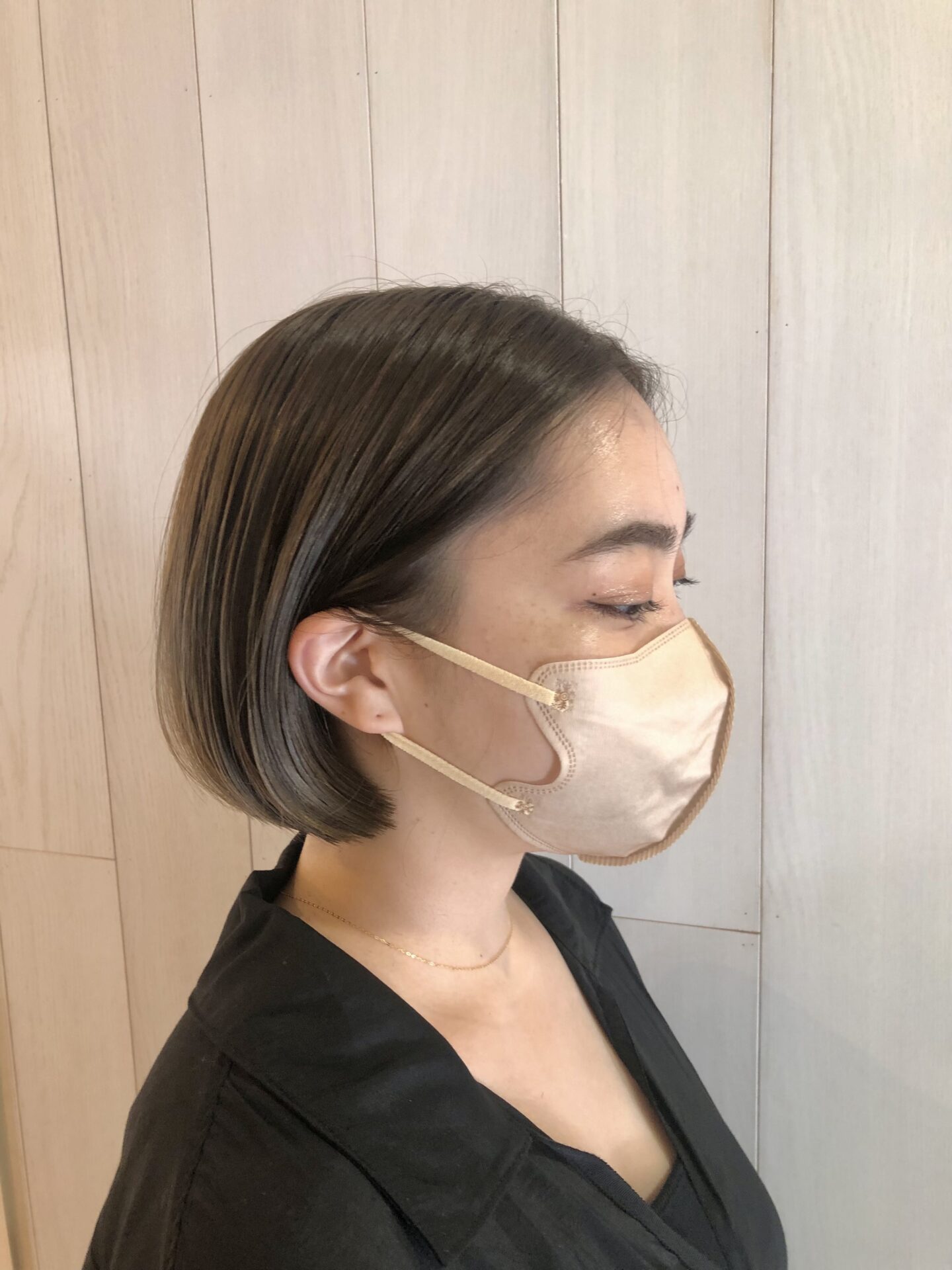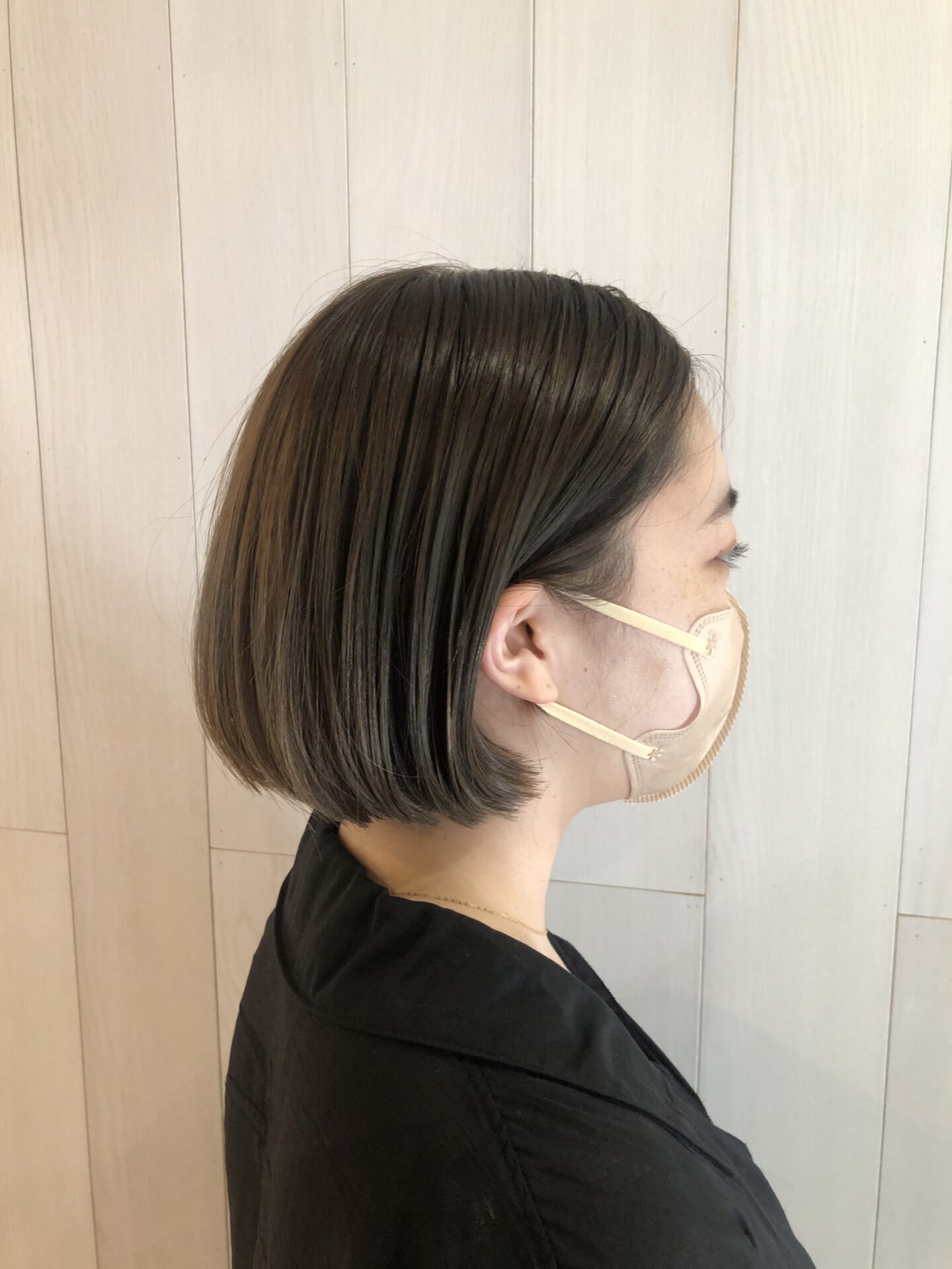 カットはちょっとモード感をだしたくてパツっとラインのボブに!