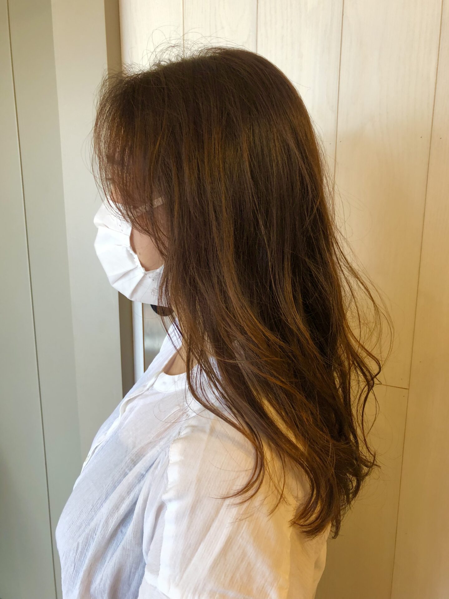 髪に明るさも出て、暖色系特有のツヤ感もあるのでいいですね!!