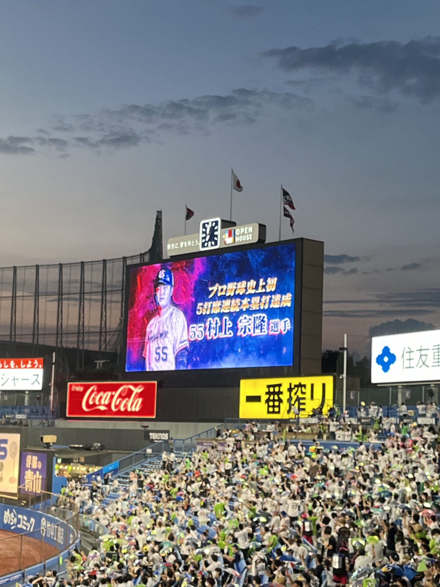 ヤクルトの4番村上宗隆選手の、前の試合から合わせて5打席連続ホームランを達成の瞬間を現地で見れたり、夏の神宮球場定番の花火が上がったり、テンションが上がりっぱなしの休日でした😊