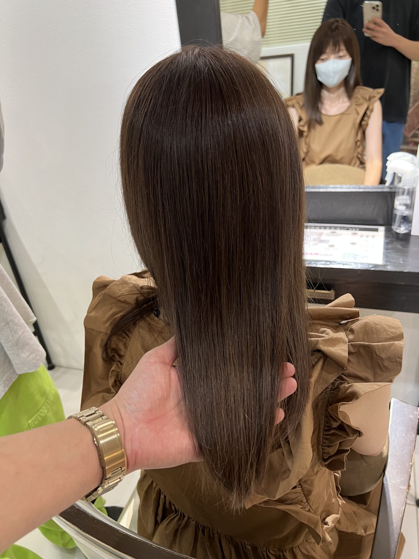 今回は、普通のカラーに+3000円でできるダメージレスカラーで染めました!