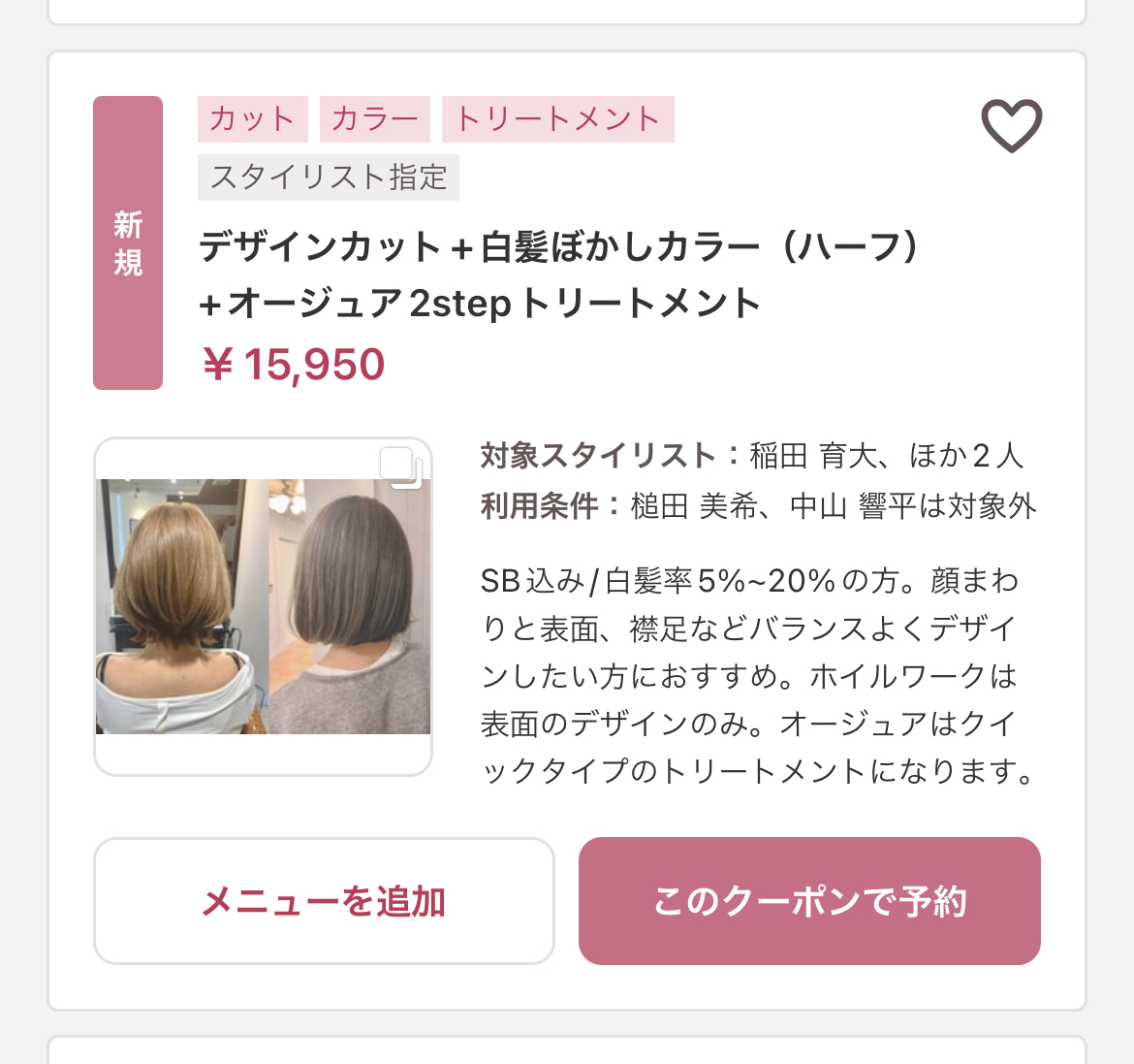 現在ご予約はホットペッパーからだと