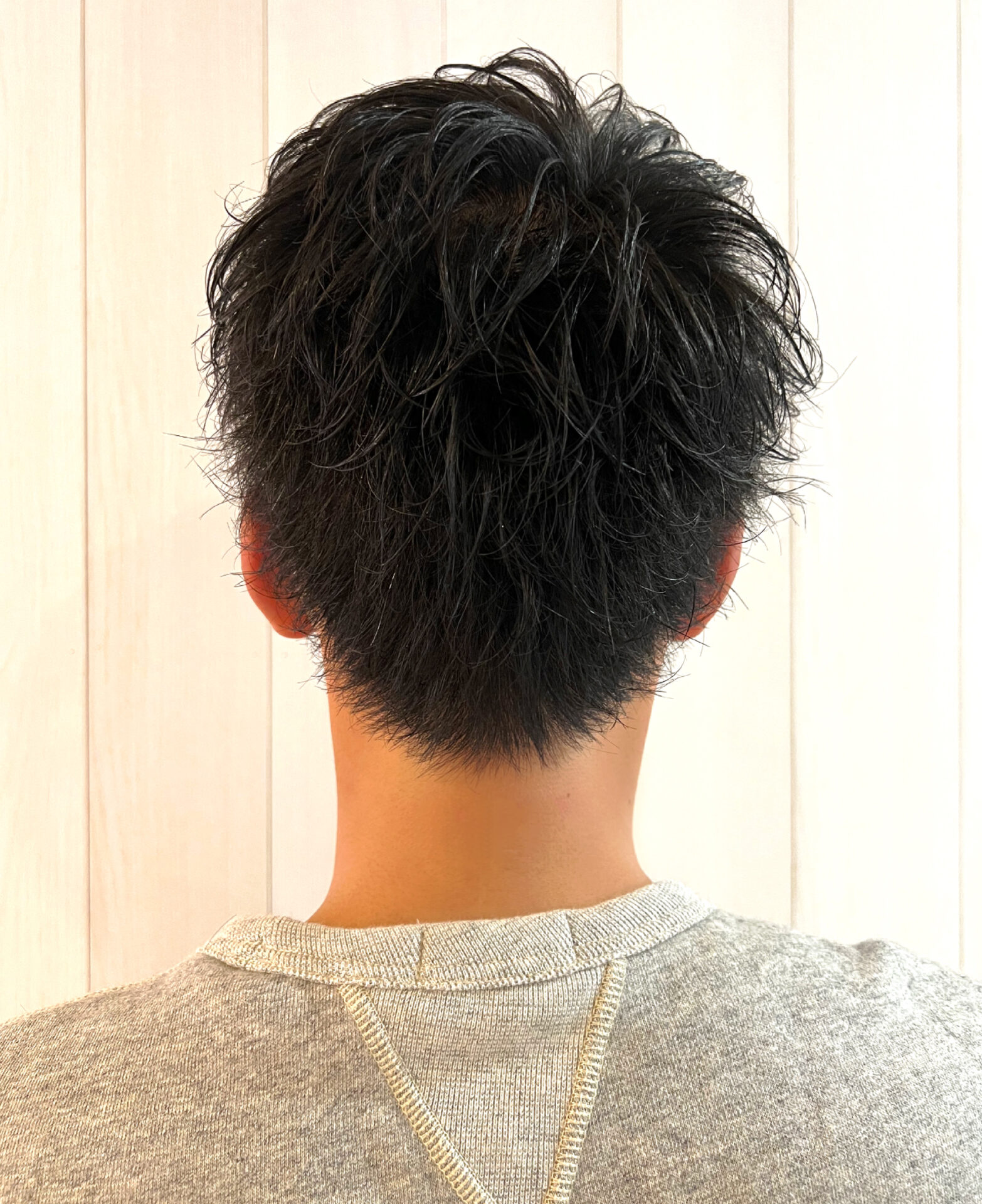 次回来店が2か月後になりそうということだったので、持ちがいいように後ろは刈り上げずに残しました。