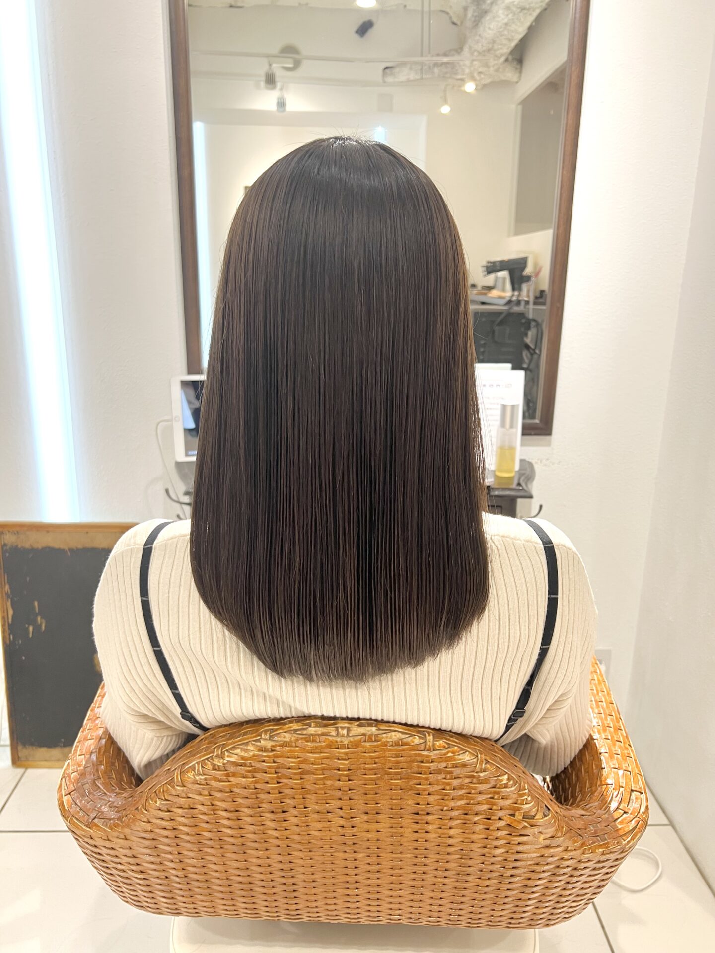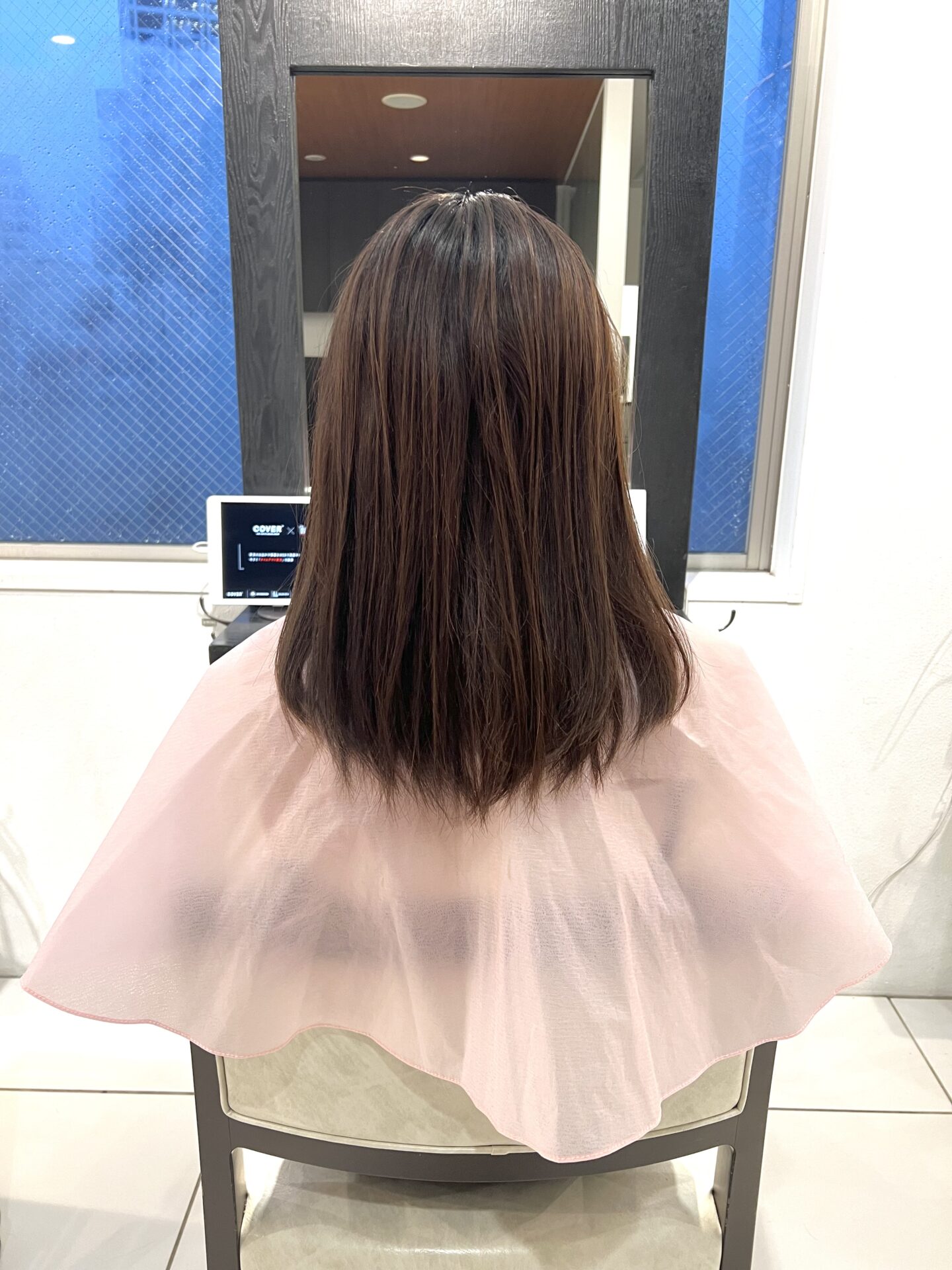 髪質に合わせて根元は特に繊細に塗布量を調節し、自然なグラデーションカラーになるようにしています