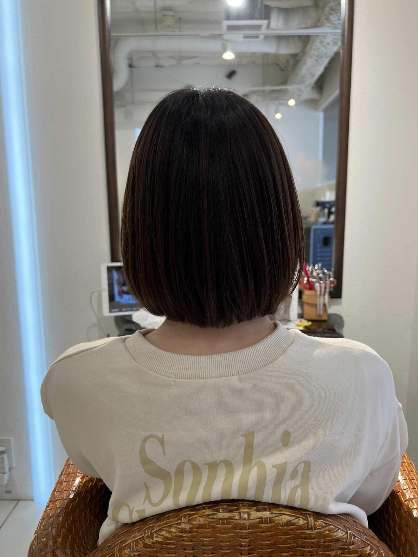 自分で乾かすと跳ねてしまうので、もうバッサリいっちゃいたいとオーダー。
