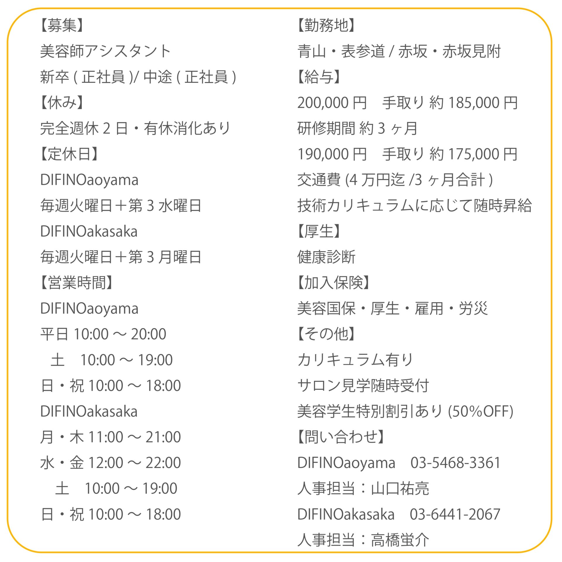 DIFINO応募方法はDIFINO青山人事山口・高橋宛に