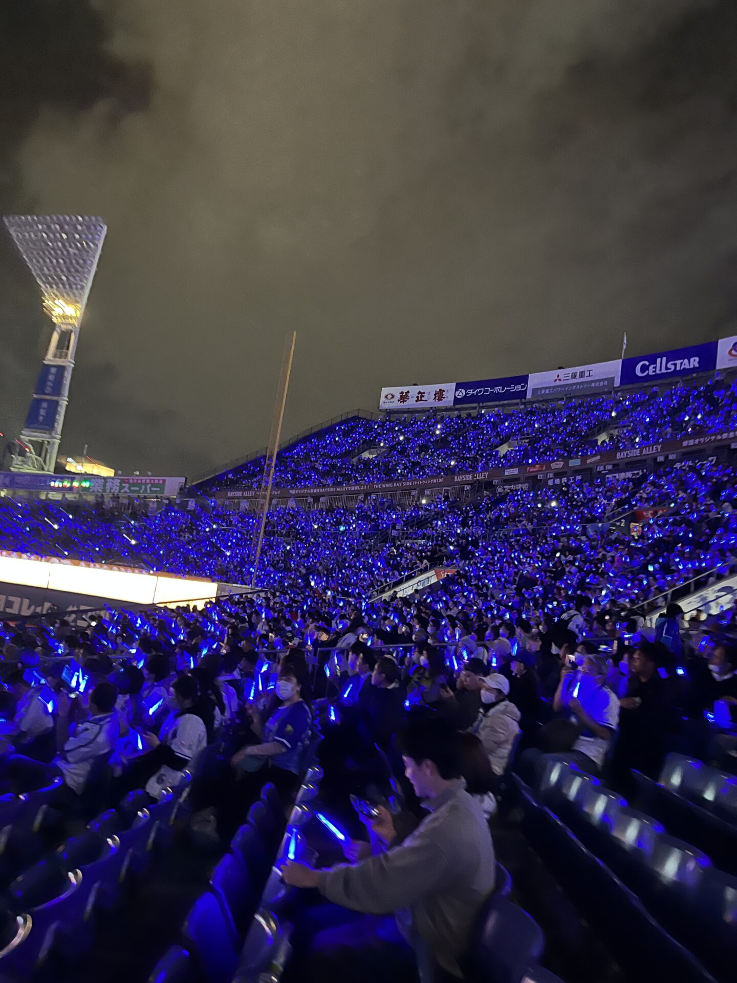 演出で、球場の照明を落として、ペンライトでライトアップ!