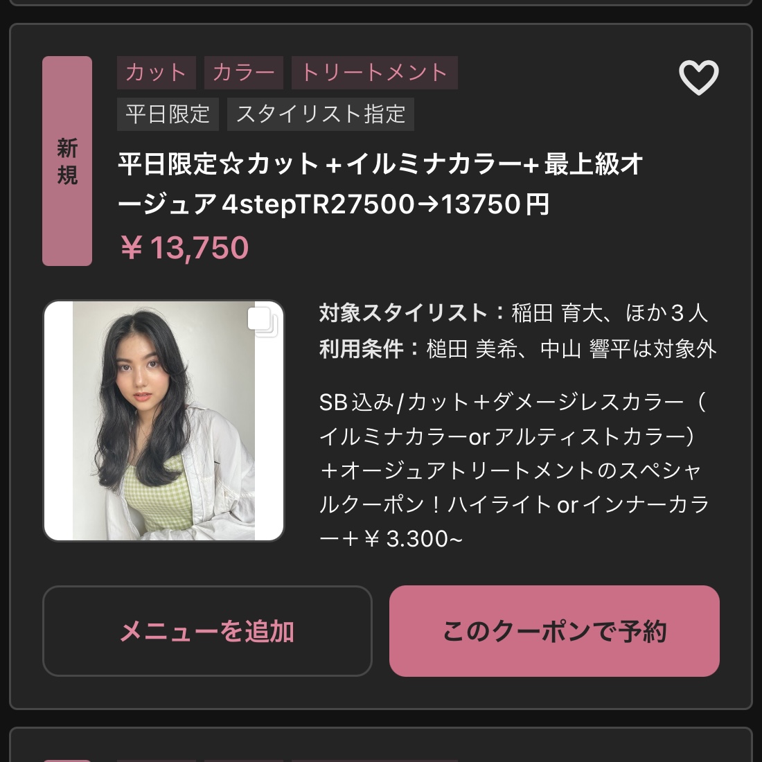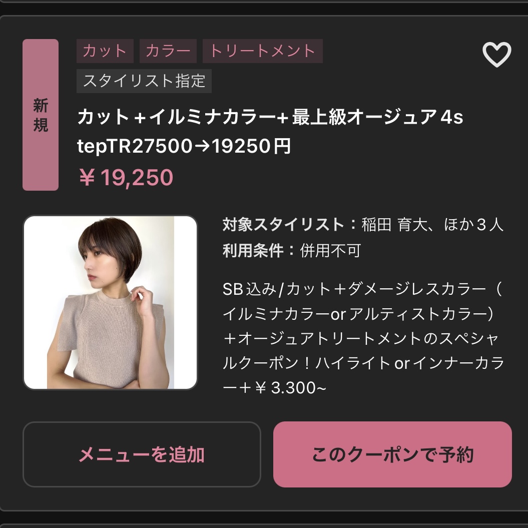 今回ホットペッパーのこちらのクーポンをご利用いただきました!