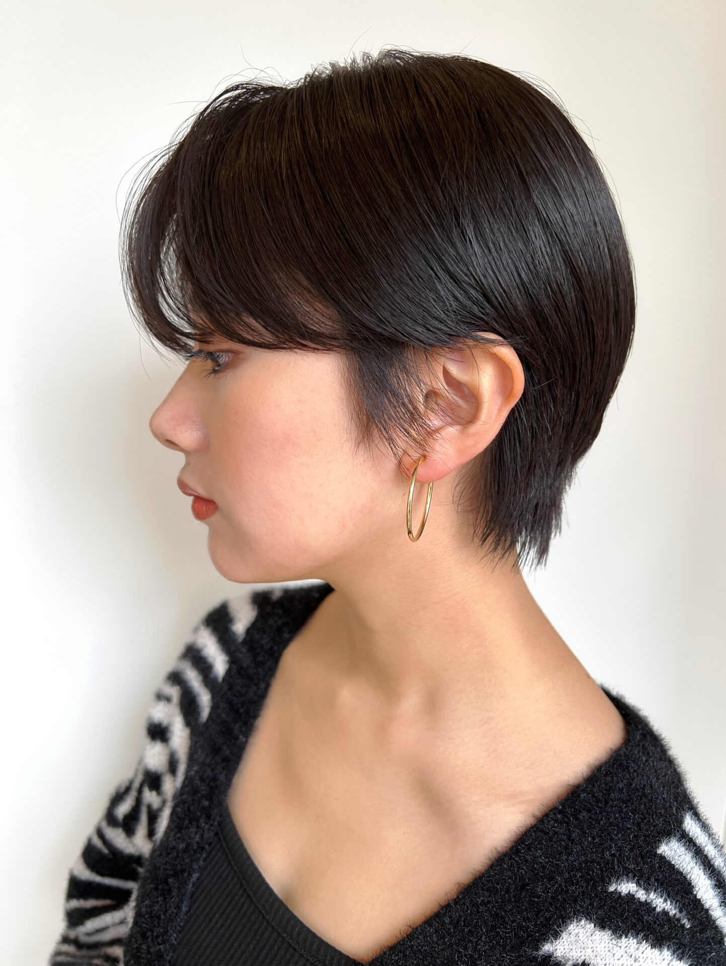 ショートヘアは全体のバランスがとても重要になってくるので、どこからみてもバランスがいいように整えて作っています!