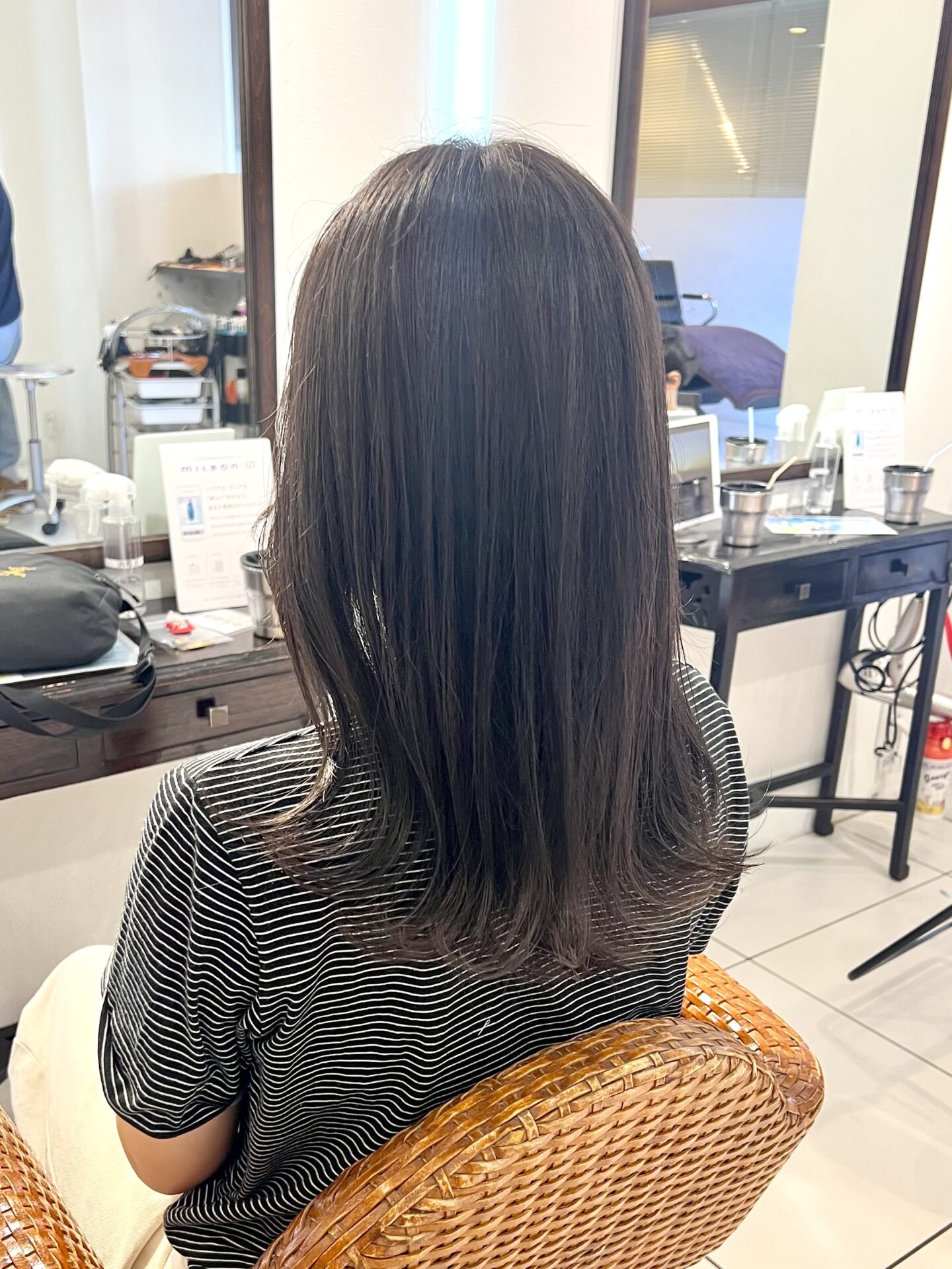 柔らかな質感に見え暗髪でも透明感溢れる髪色ということです!