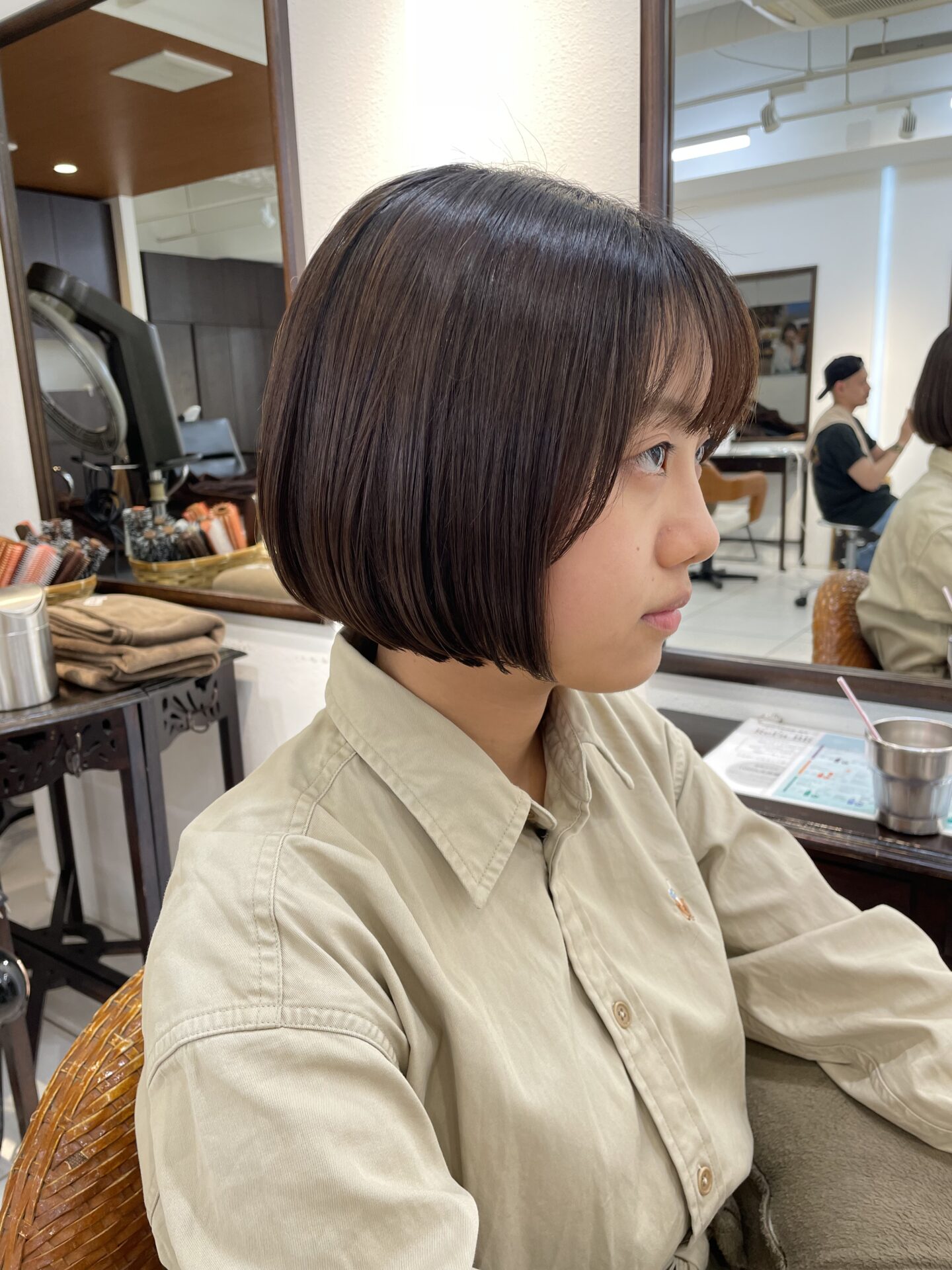 こちらのボブはミニボブに近く、コンパクトさが出て、可愛らしいシルエットになりました!