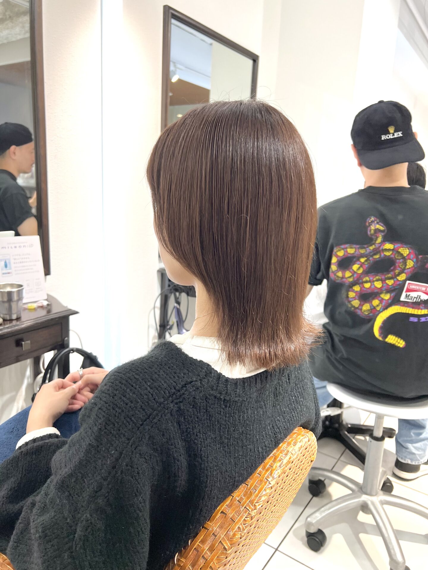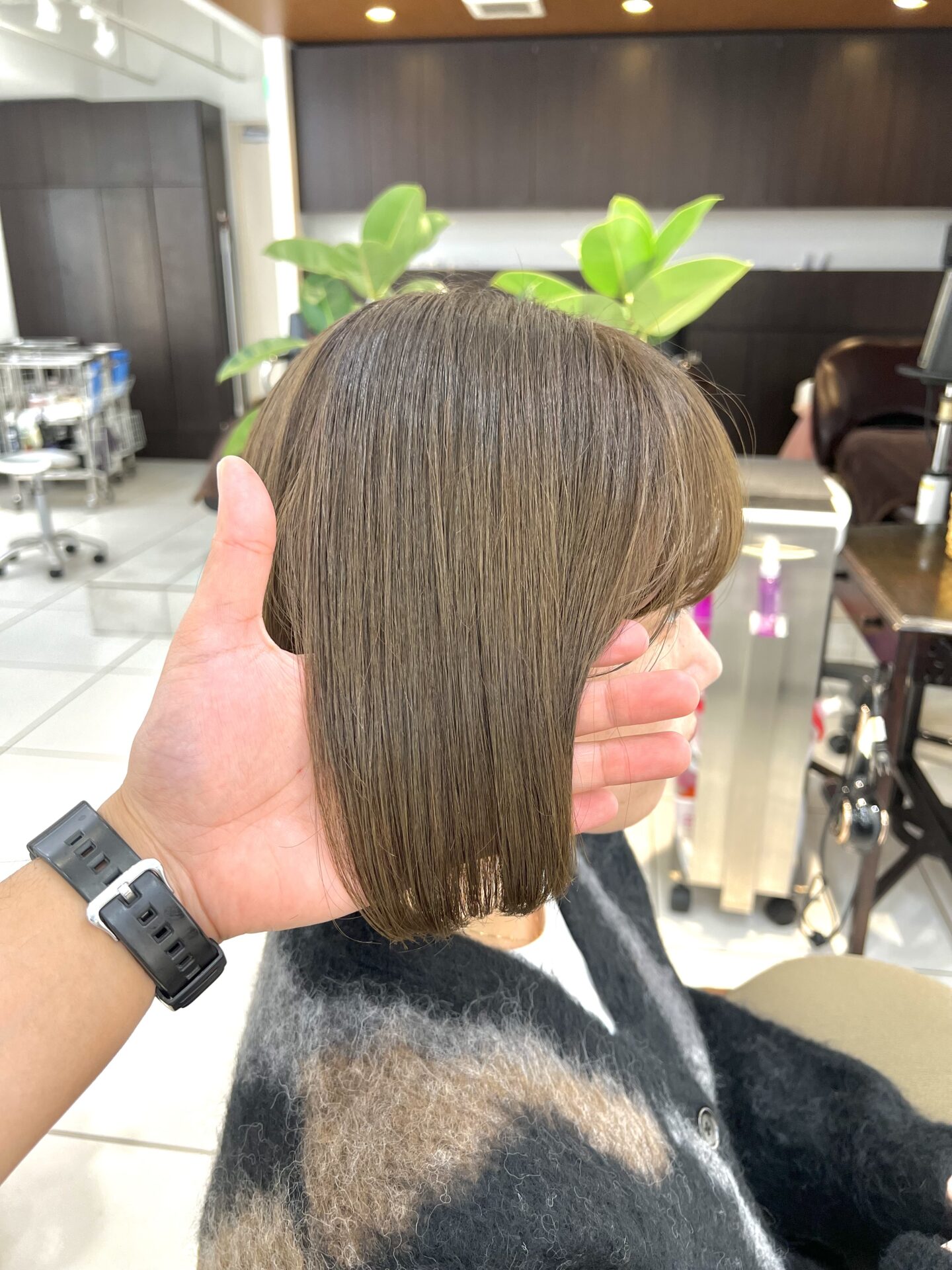 今回のお客様は元々赤味が強く、暗めのアッシュにして
