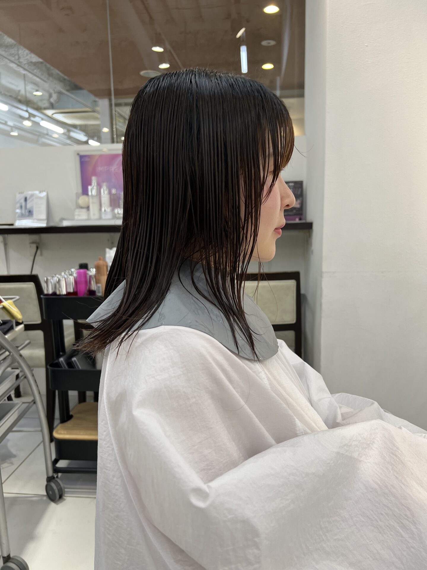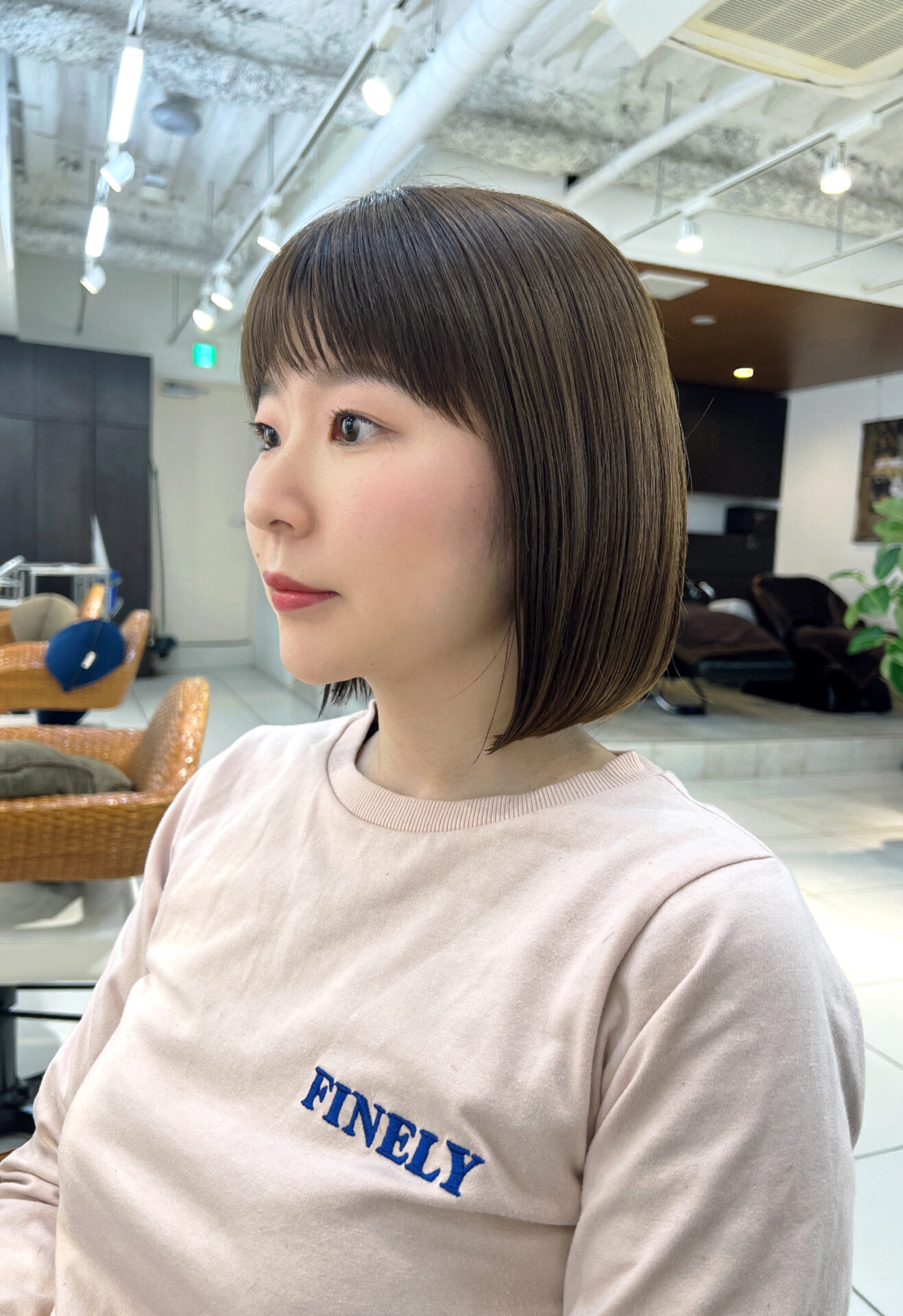 癖が少しあり、ボリュームがでやすくて、あまり短くするとこけしっぽさが強調されてしまうので、顎下5センチくらいの長めのボブにしました。