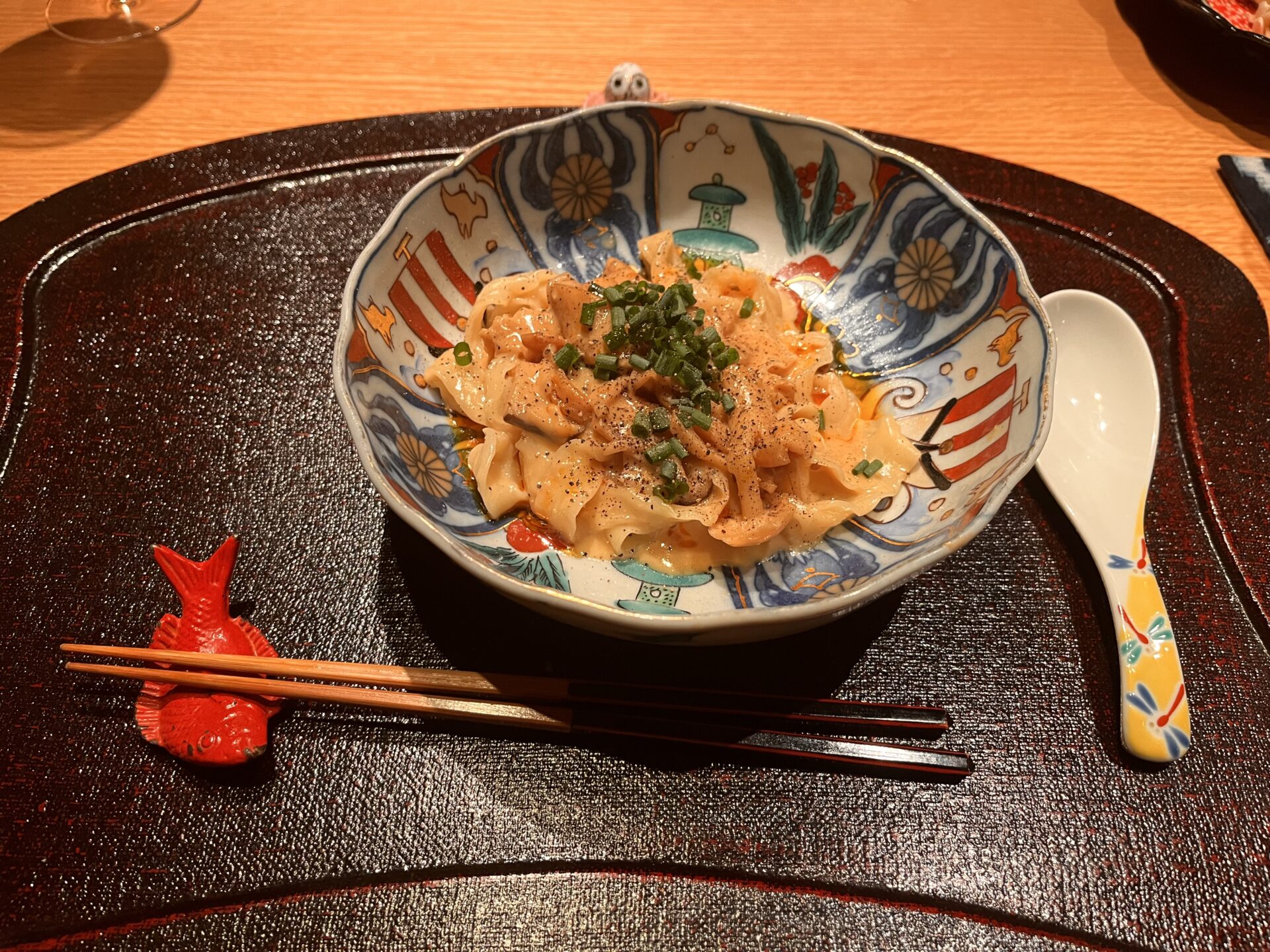 きのこと辣油のクリーム和え麺