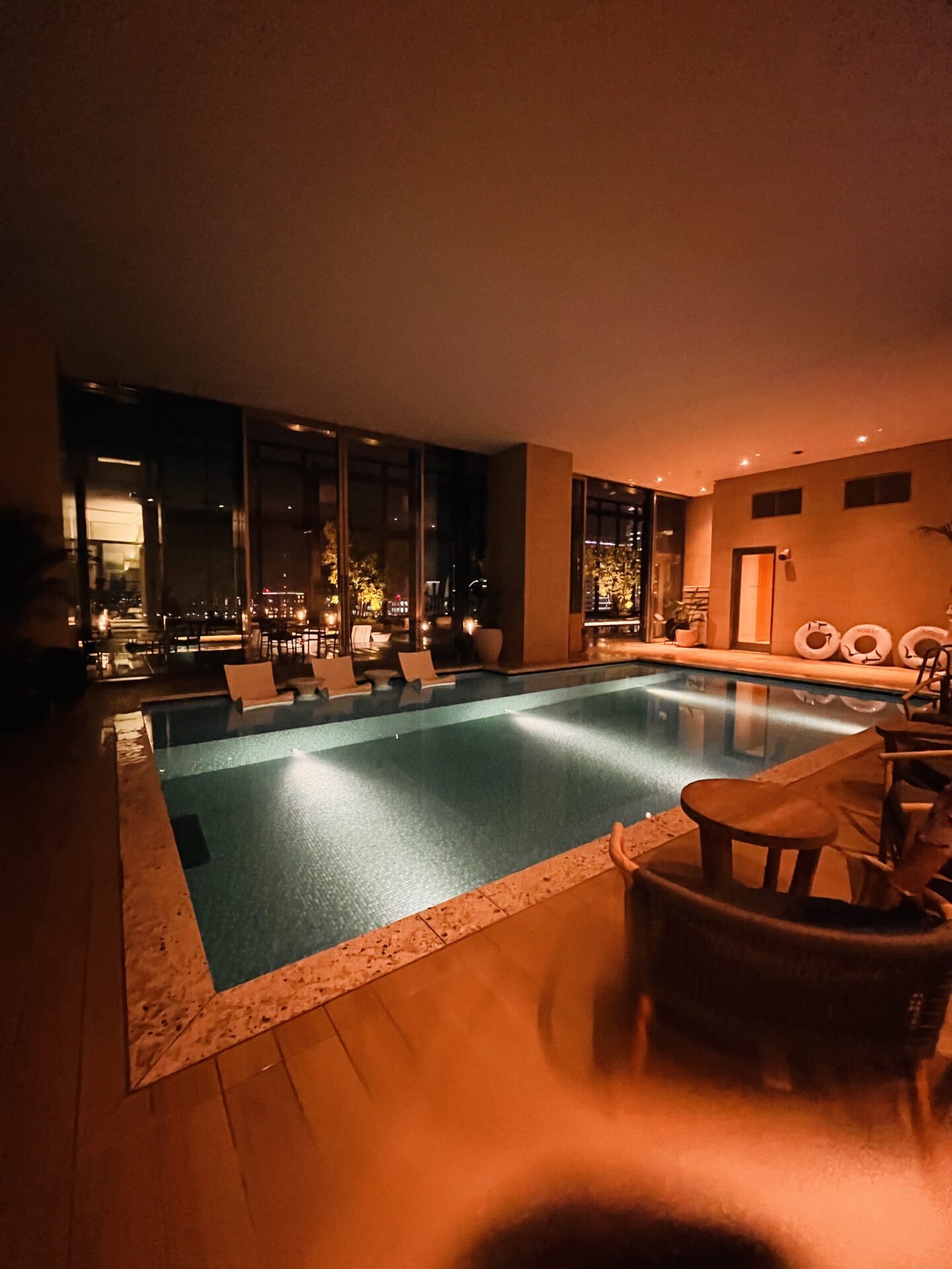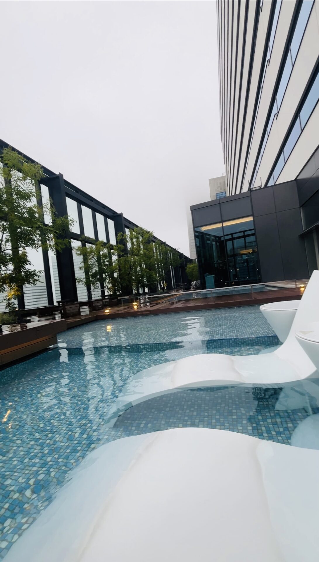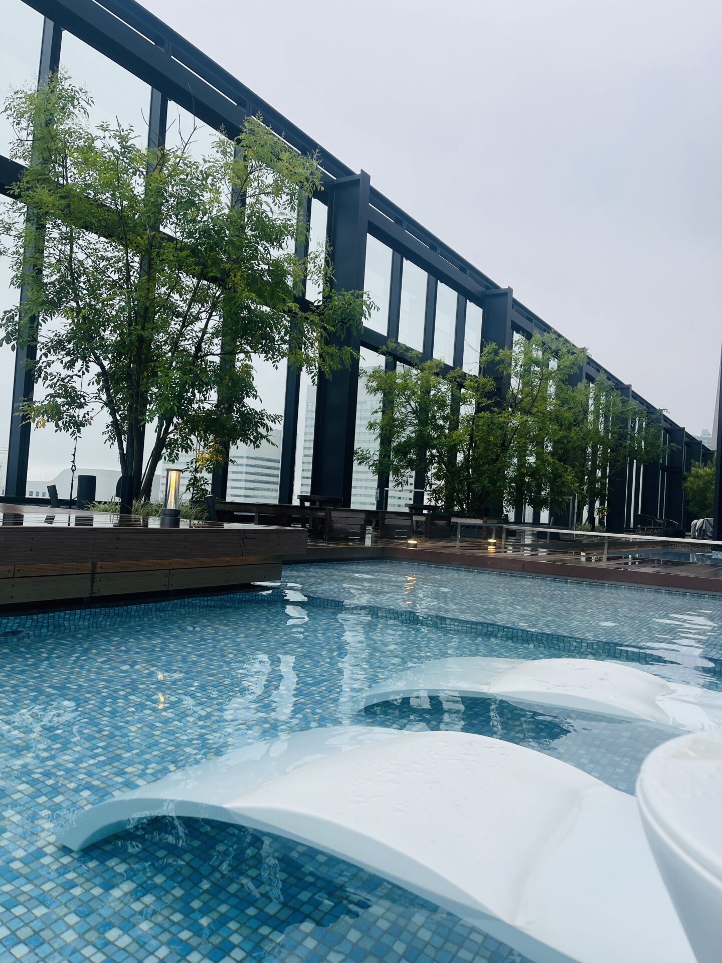 また、屋外プールにはジェットバスもあり、空の上でリフレッシュタイムを過ごすことができるんですよ。夜も最高!